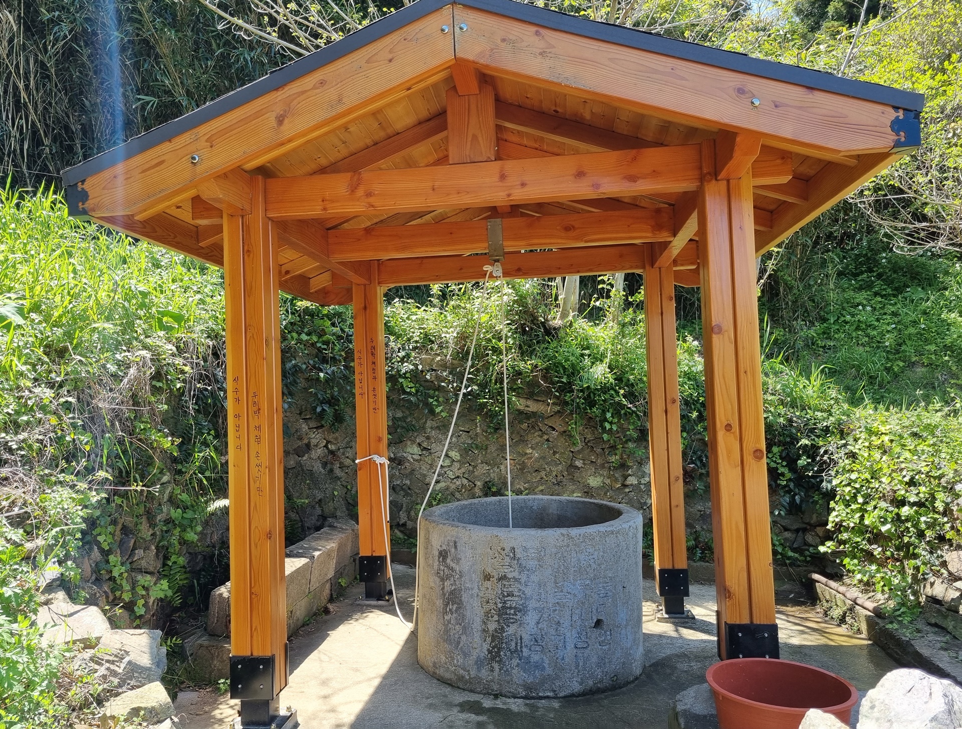 이 우물은 천원지방(天圓地方) 우물인데, '하늘은 동그랗고 땅은 네모다."는 옛 사람들의 생각이 반영된 쌍우물로 위는 둥근우물이고 아래는 네모우물이다.
