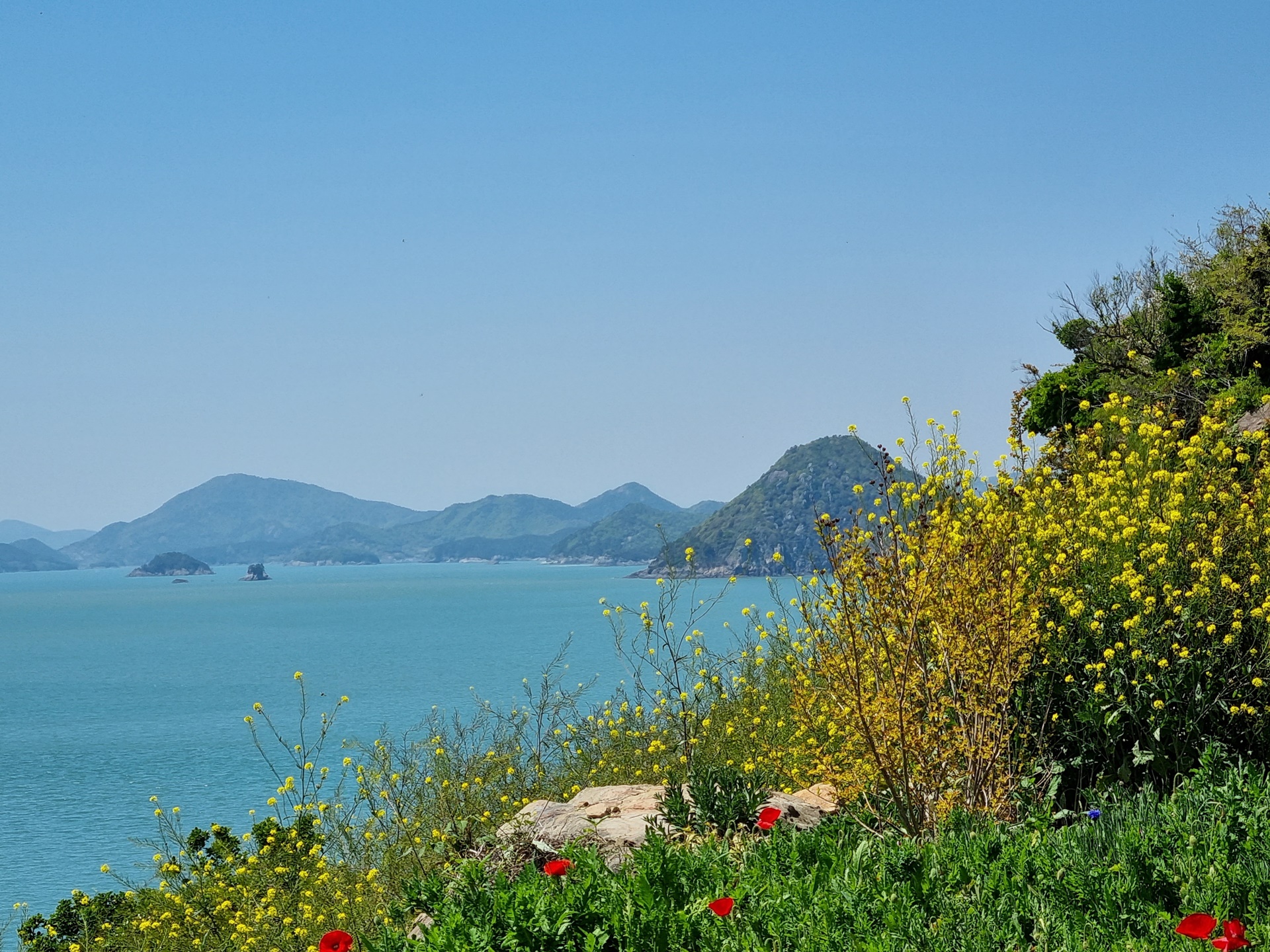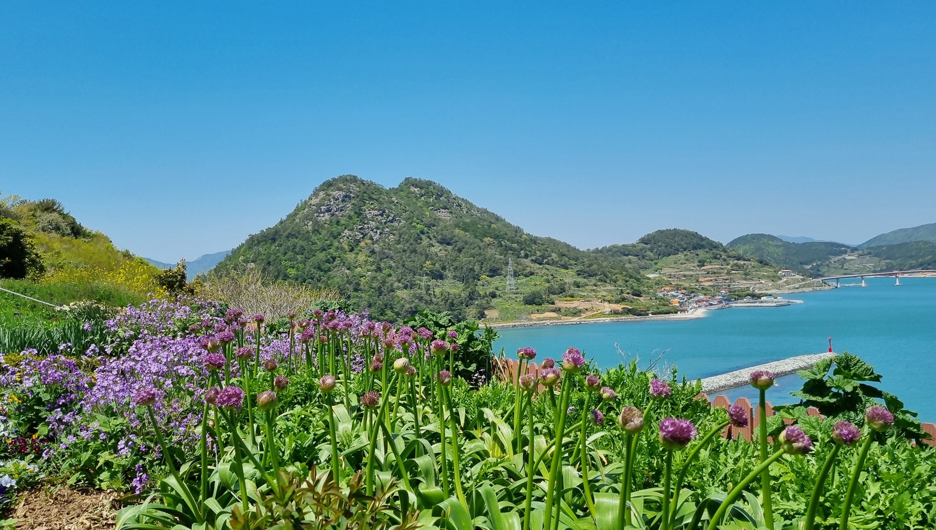 꽃과 바다와 산이 아름답게 어우러집니다.