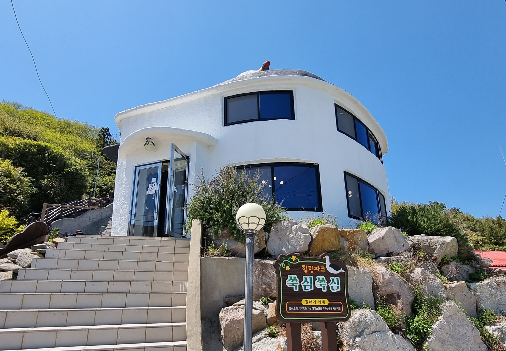 섬 하단에 인어형상과 우측에 큰바위얼굴이 세개가 있답니다.