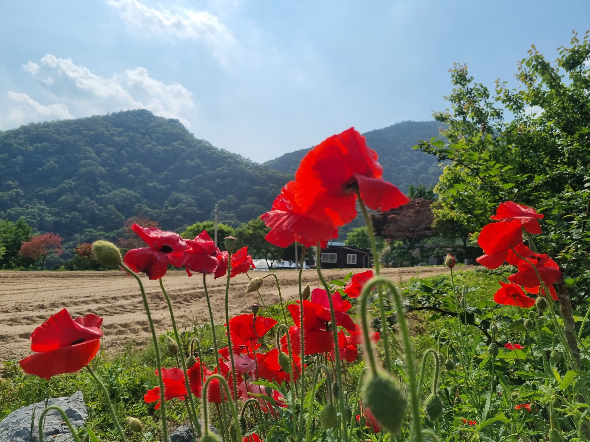 ์กฐ๋ง์ ๋ฌด์ฒ ์ฐ์ํ์ฌ ์ฌ๋ฐฉ์ผ๋ก ๊ฐ์๋์ ์๋ง์ ๊ณ ์ฐ์ค๋ น(้ซๅฑฑๅณปๅถบ)์ด ๋ฐ์๋๋ก ๋ด๋ ค๋ค ๋ณด์ด๊ณ , ์ด๊ณณ์ ๋ด,์ฌ๋ฆ,๊ฐ์์ด ์ค๋ฉด ์๋ง์ ์ผ์ํ๋ก "์ฒ์(ๅคฉไธ)์ ํ์(่ฑๅ)"์ด ๋ง๋ค์ด์ง๊ณ , ๊ฒจ์ธ์๋ ์ํ์ ์ค๊ตญ(้ชๅ)์ผ๋ก ๋ณํ๋๋ฐ, ํนํ 6์์ด ์ค๋ฉด '์ค์คํ๋ฐ์ด์ง๊ฝ'์ด ๋ง๊ฐํ์ฌ ์จํต ์ํ์ ์ธ์์ด ๋๋ค.