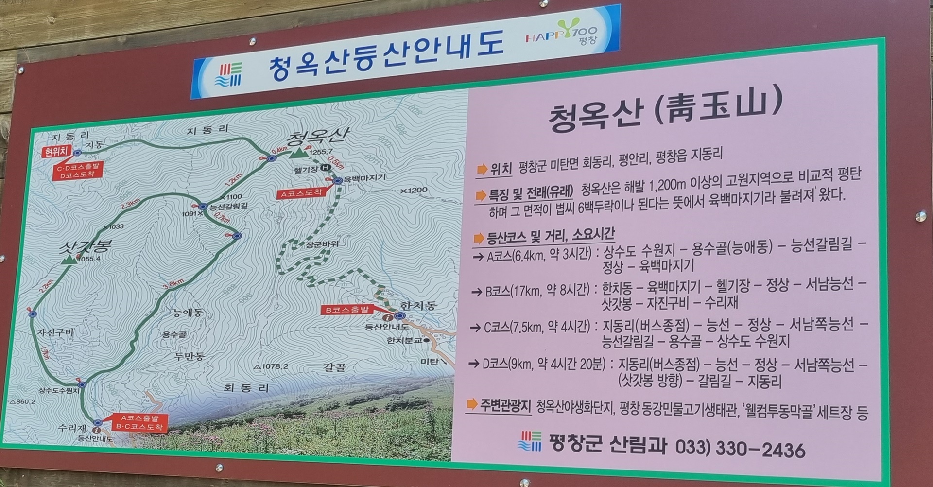 โ ์ง๋๋ฆฌ-์ง๋๊ฐ๋ฆผ๊ธธ-์ฒญ์ฅ์ฐ ์ ์-์ก๋ฐฑ๋ง์ง๊ธฐ-์ง๋๊ฐ๋ฆผ๊ธธ(ํ๊ท)-์ฉ์๊ณจ-์์๋์์์ง-์๋ฆฌ์ฌ (์ฝ9km/5์๊ฐ)