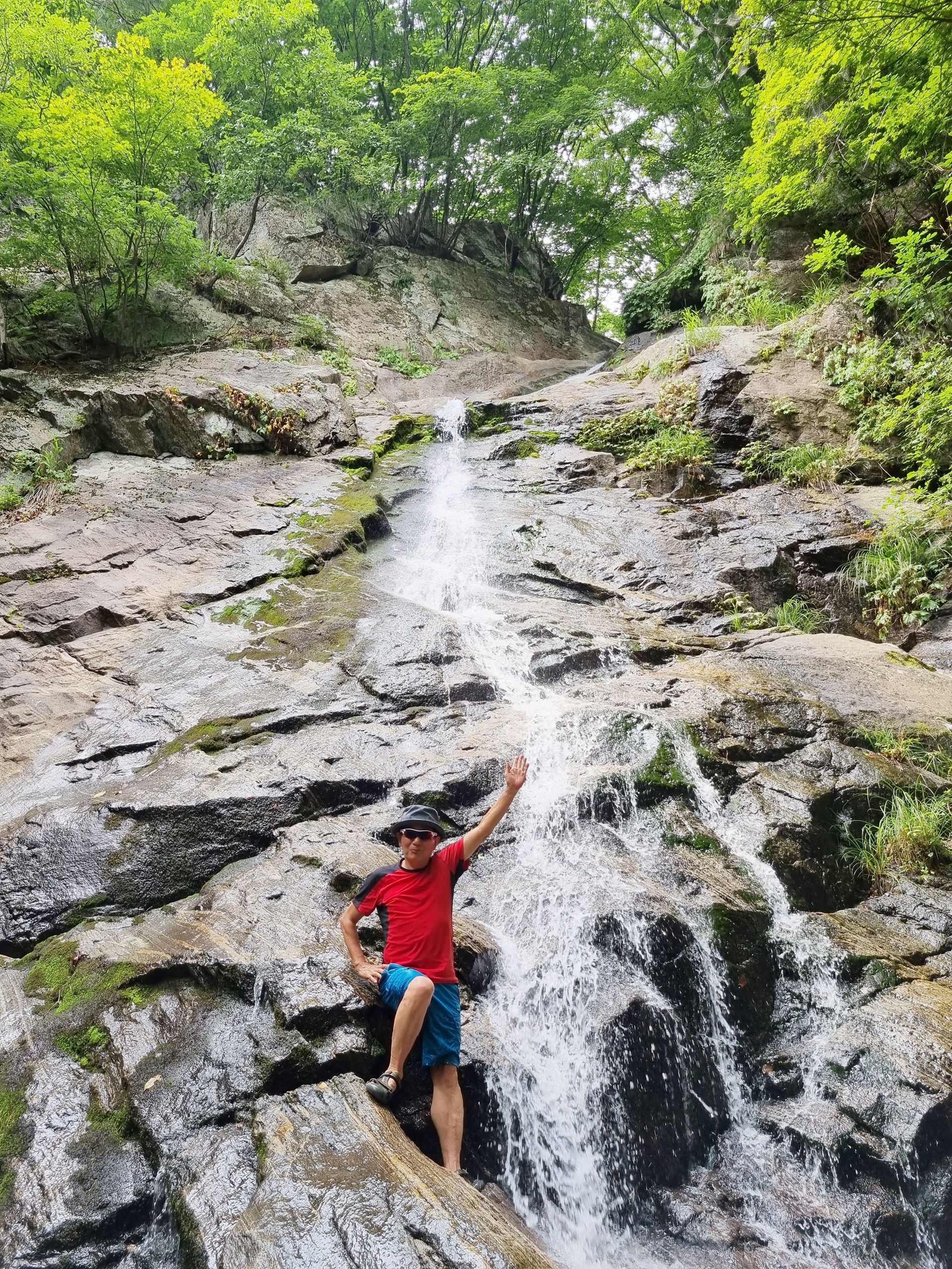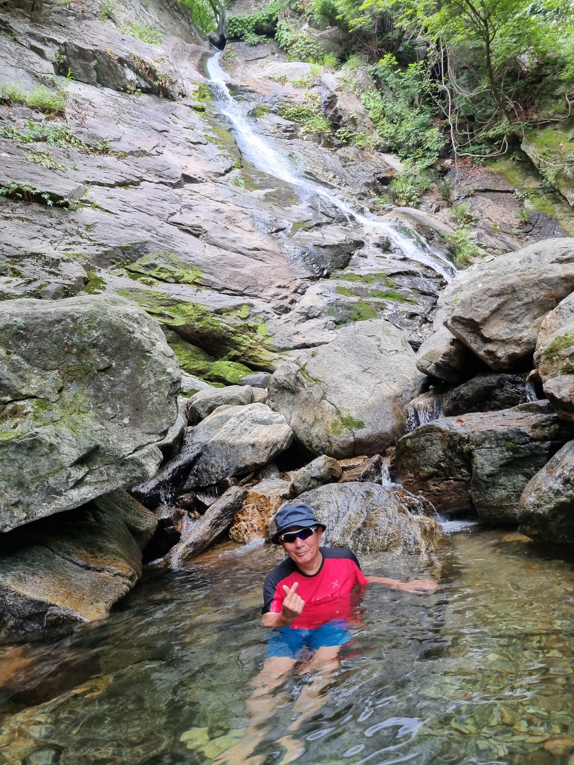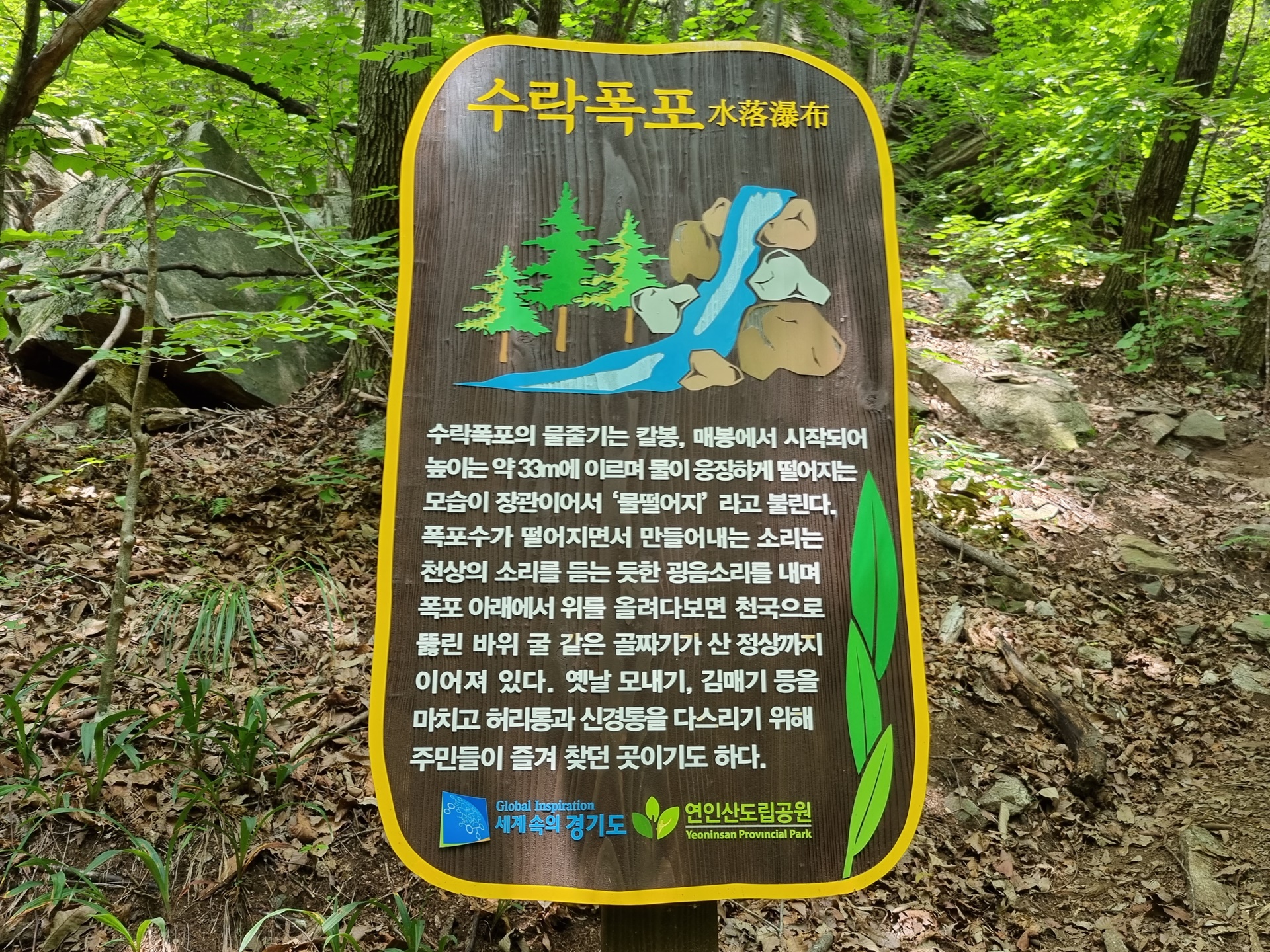 ์๋ฝํญํฌ๋ ์นผ๋ด์ฐ·๋งค๋ด·๊น๋๋ด์ผ๋ก ๋๋ฌ์ธ์ธ ์ฐ์๋ฝ ์คํฑ์ ์์นํด ์์ผ๋ฉฐ, ๊ฒฝ๋ฐ๊ณ๊ณก์ ๋ฐ๋ผ ํ๋ฅด๋ ๊ฒฝ๋ฐ์ฒ์ ์์์ ์ด๊ธฐ๋ ํ๋ค. ์๋ฝํญํฌ๋ ๋์ด๊ฐ 32.8m์ด๋ค. ํญํฌ์ ์๋จ๋ถ๋ ์ข์ ํธ์ธ๋ฐ ํ๋จ๋ถ๋ก ๊ฐ์๋ก ๋ฌผ์ค๊ธฐ๊ฐ ๋๊ฒ ํผ์ง๋ ๋ถ์ฑ์ด ๋ชจ์์ ๋ ๊ณ ์๋ค. ํญํฌ ์๋์๋ ํฌ๊ณ ๋๋ฅธ ๋ฐ์๋ค์ด ์ธํญ๋ถํญ ์์ ์์ง๋ง ์