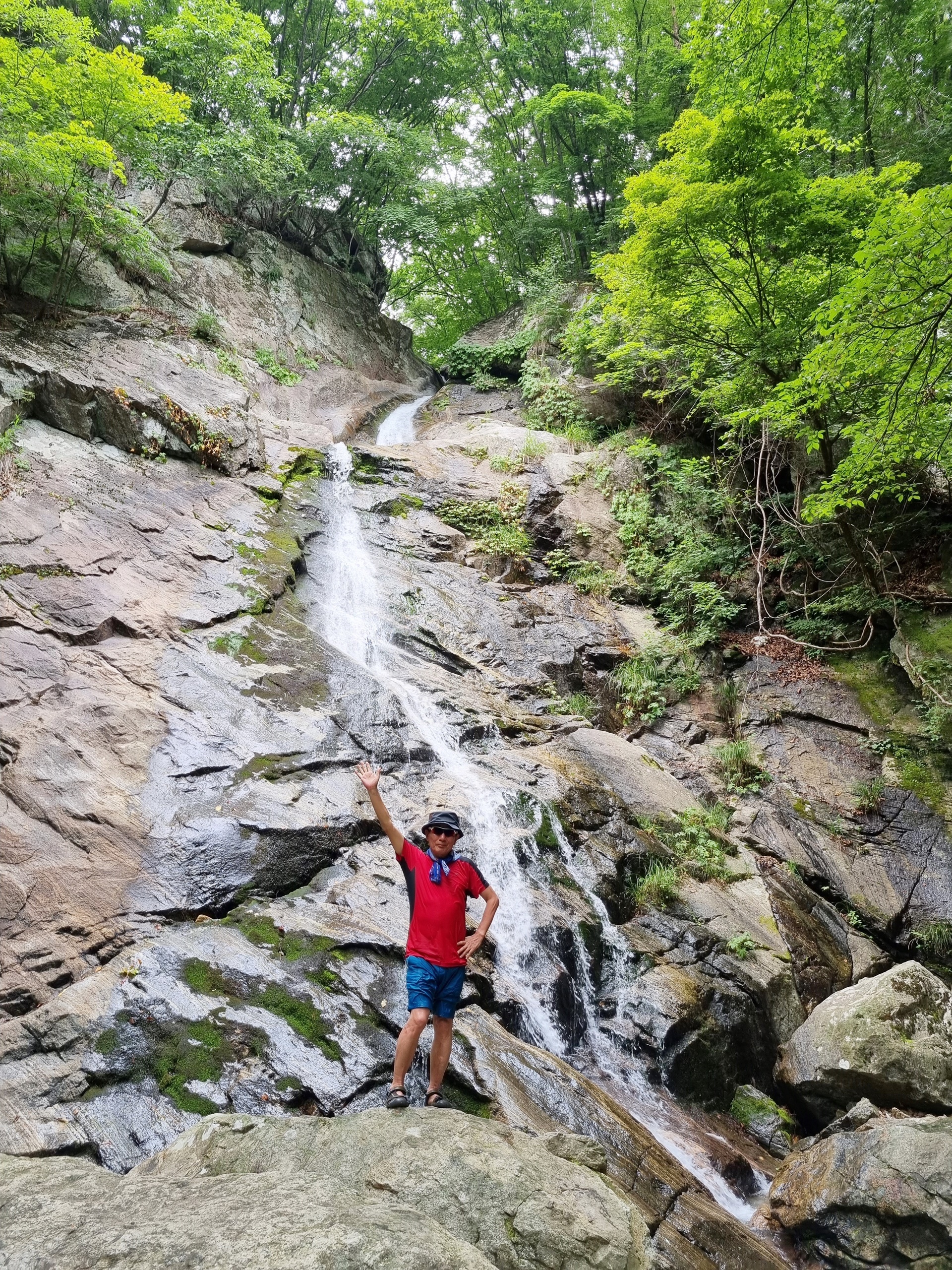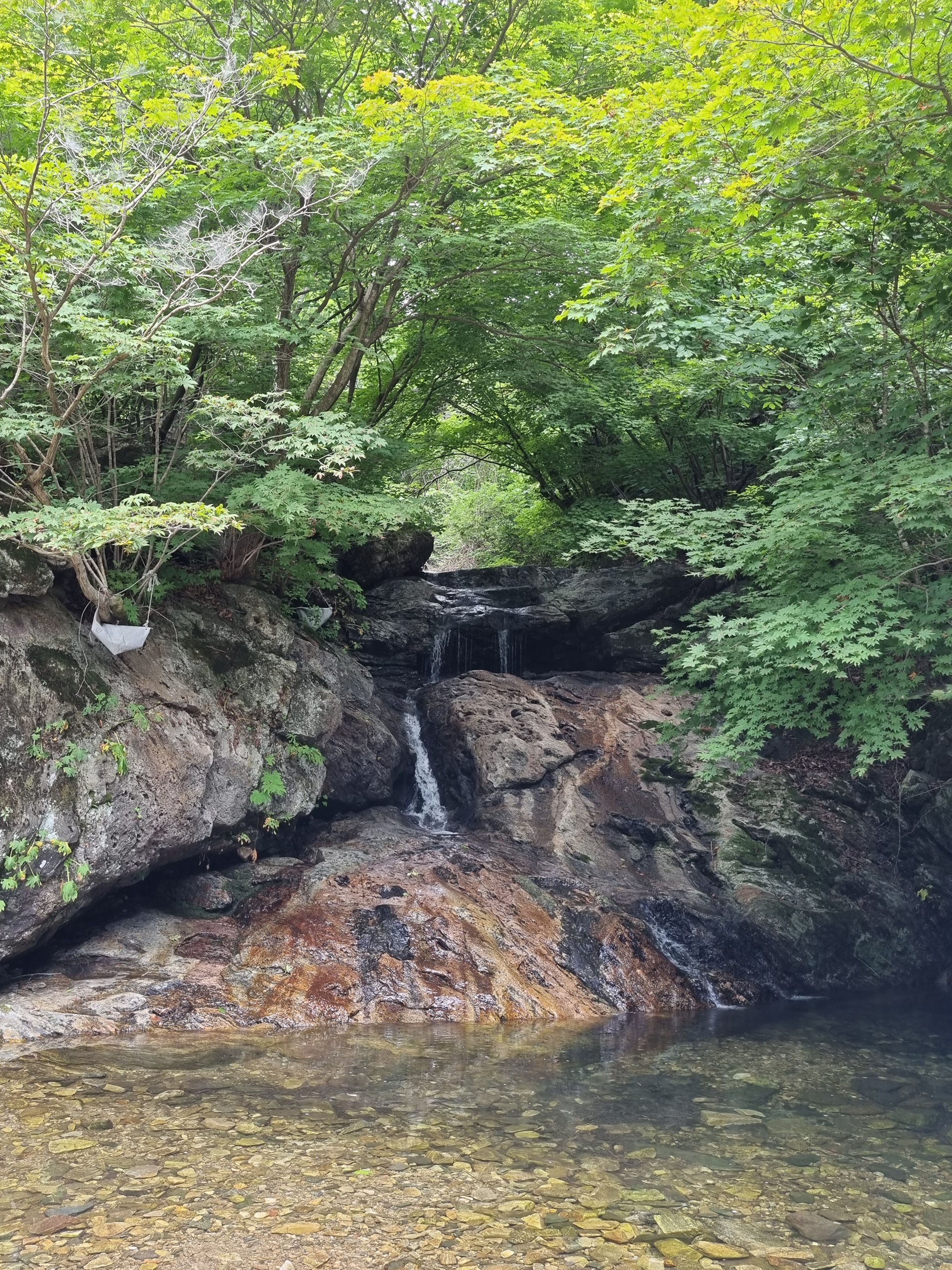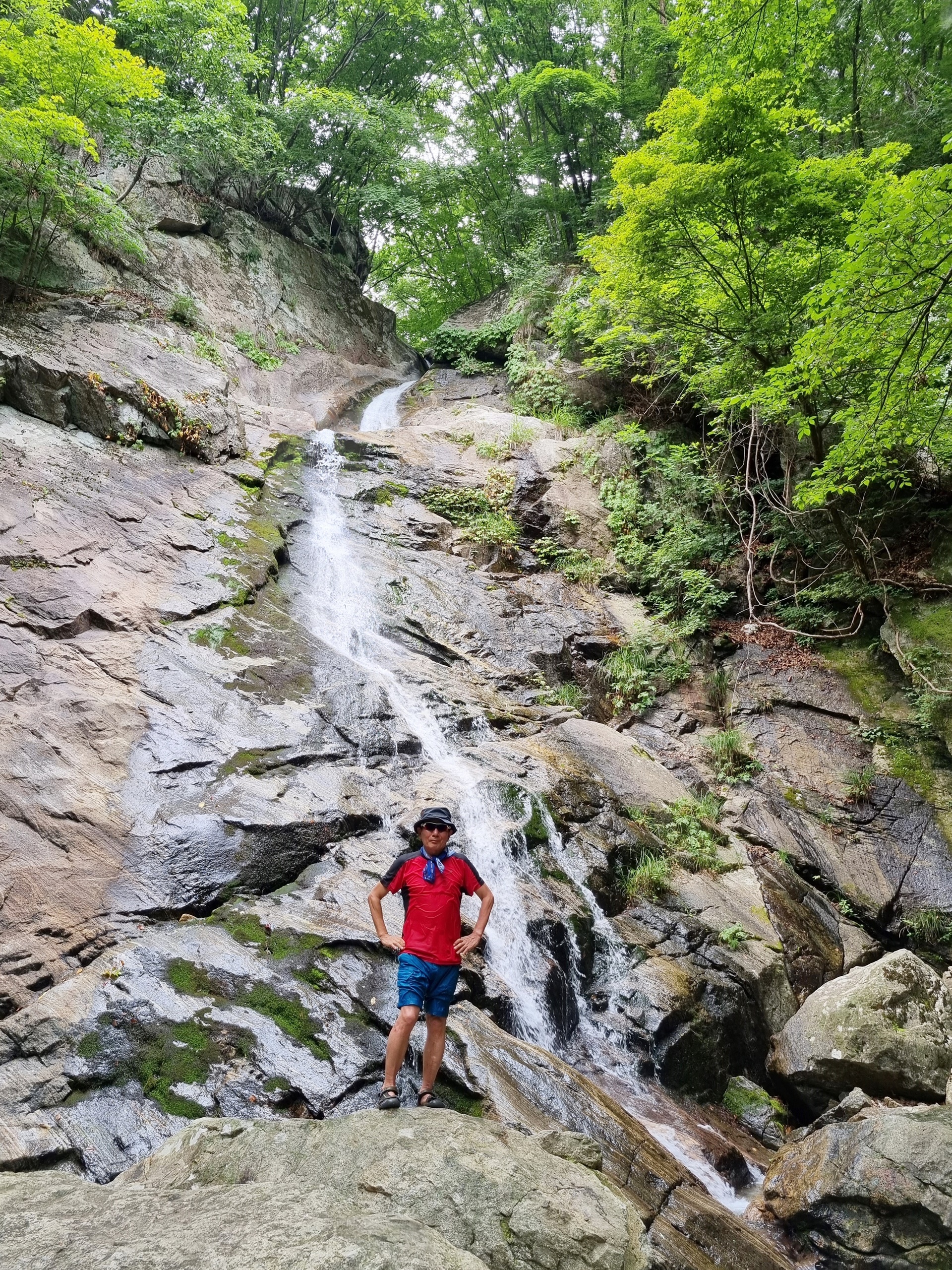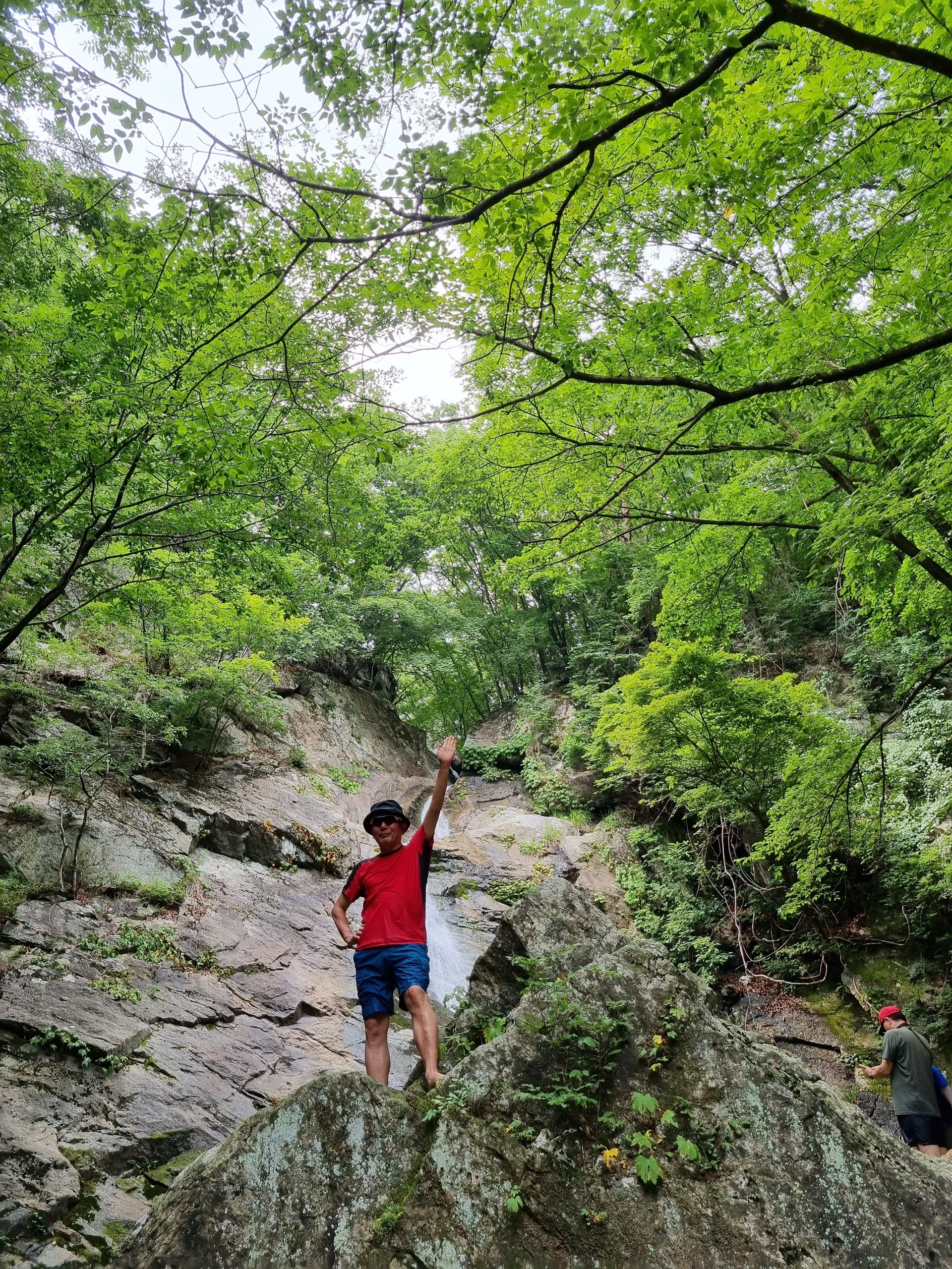 ์๋ฝํญํฌ๋ ์นผ๋ด์ฐ·๋งค๋ด·๊น๋๋ด์ผ๋ก ๋๋ฌ์ธ์ธ ์ฐ์๋ฝ ์คํฑ์ ์์นํด ์์ผ๋ฉฐ, ๊ฒฝ๋ฐ๊ณ๊ณก์ ๋ฐ๋ผ ํ๋ฅด๋ ๊ฒฝ๋ฐ์ฒ์ ์์์ ์ด๊ธฐ๋ ํ๋ค. ์๋ฝํญํฌ๋ ๋์ด๊ฐ 32.8m์ด๋ค. ํญํฌ์ ์๋จ๋ถ๋ ์ข์ ํธ์ธ๋ฐ ํ๋จ๋ถ๋ก ๊ฐ์๋ก ๋ฌผ์ค๊ธฐ๊ฐ ๋๊ฒ ํผ์ง๋ ๋ถ์ฑ์ด ๋ชจ์์ ๋ ๊ณ ์๋ค. ํญํฌ ์๋์๋ ํฌ๊ณ ๋๋ฅธ ๋ฐ์๋ค์ด ์ธํญ๋ถํญ ์์ ์์ง๋ง ์