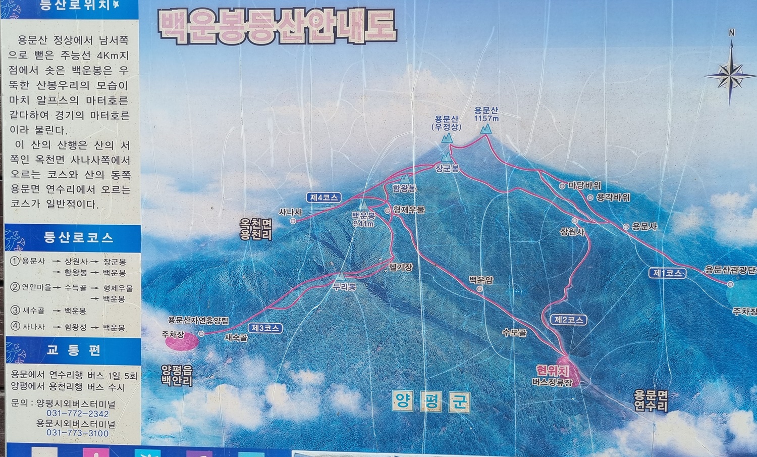 ์ ์ด๋ฆ์ด ๋ฏธ์ง์ฐ(ๅฝๆบๅฑฑ)์ธ ์ฉ๋ฌธ์ฐ(้พ้ๅฑฑ, 1157m)์ ์ฐ์ธ(ๅฑฑๅข)๊ฐ ์ ๋ํ์ฌ ๋์ 8km, ๋จ๋ถ 5km์ ๊ฑธ์น๊ณ , ์ฉ๋ฌธ์ฐ์ ์ฃผ๋ด์ผ๋ก ํ์ฌ ๋๋ถ๋ 5.5km์ ๋์ผ๋ด(้ไธๅณฐ, 864m), ๋์ชฝ 4.5km์ ์ค์์ฐ(ไธญๅ ๅฑฑ, 800m), ๋จ์ 3.5km์ ๋ฐฑ์ด๋ด(็ฝ้ฒๅณฐ) ๋ฑ ์ง๋ด(ๆฏๅณฐ)์ด ์ฐ๋ ์์ ์ฐ๋ด์ ์ด๋ฃจ๊ณ ์๋ ์ฐ์ด๋ค. ํนํ ์ง์ฌ์ฐ๊ธธ์ ๋ฐฑ์ด๋ด ๋จ์ชฝ์ผ๋ก ์๋ฆฌ ์ก์ <์ฌ์ํํฌ>์์ ์ถ๋ฐํ์ฌ <์ฉ๋ฌธ์ฐ์์์ฌ>๊น์ง ์ฐ๊ฒฐ๋๋ ์ฒ๊ธธ์ด๋ค.
