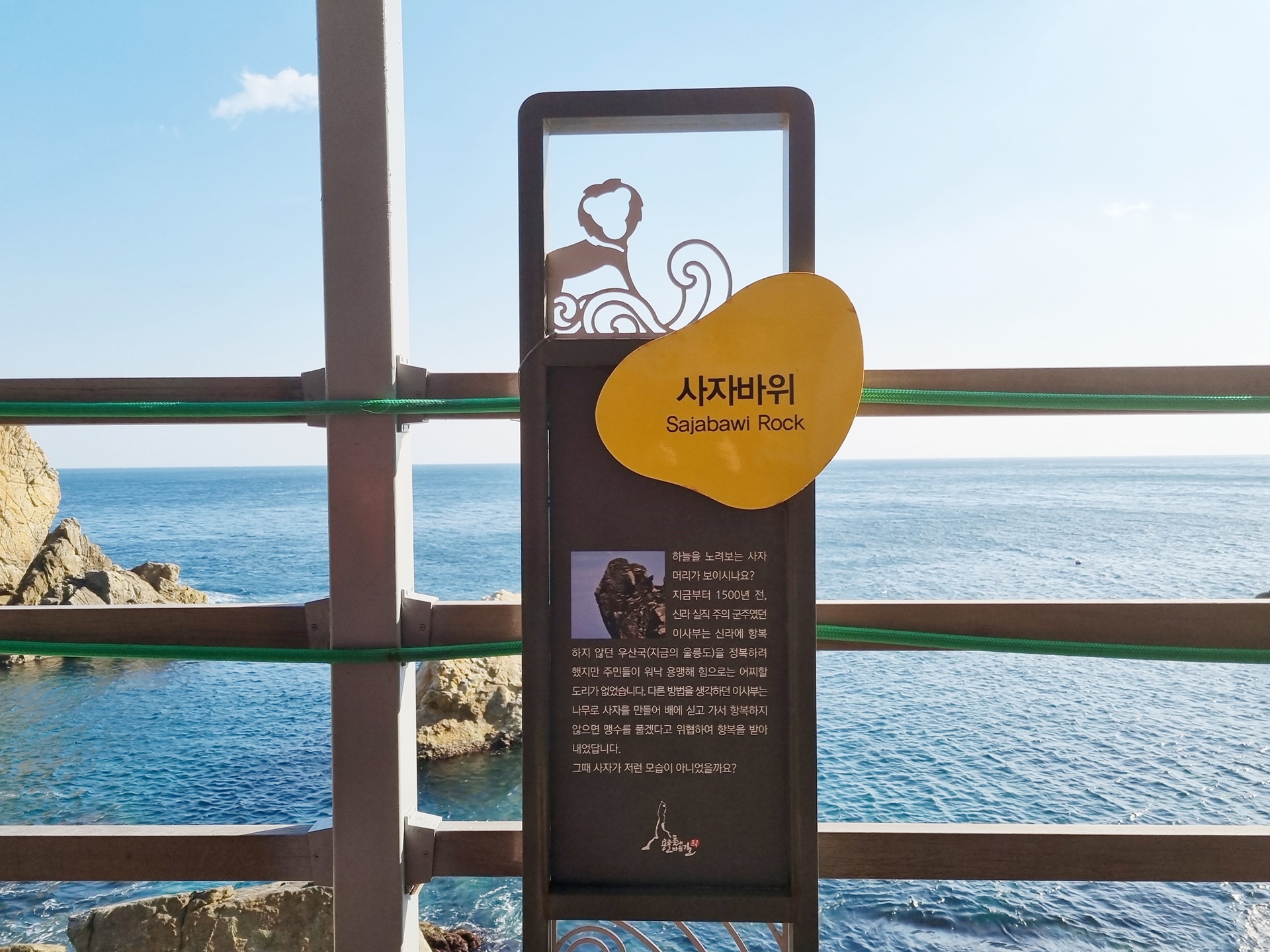그때 배에 실려있던 나무사자 한마리가 우산국 남양포구에 내려 울릉도를 지켜주는 사자바위가 되었고. 삼척으로 귀향하던 배에 실린 또 다른 한마리의 사자가 이곳 이사부길 해변에 내려져 지금의 삼척을 지키는 사자바위가 되었다고 합니다.