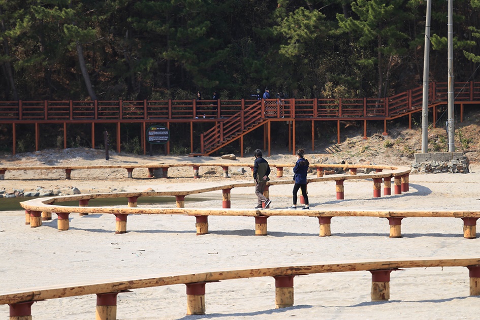 산 둘레를 따라 경계 철책 대신 나무데크가 설치돼 해양 생태 탐방로로 꾸며졌다. 총 길이는 943m. 전망대에서 바다와 기기묘묘한 바위를 감상할 수 있는 해안 코스 626m와 대나무숲을 따라 정상 전망대로 올라가는 코스 317m가 서로 연결돼 있다.