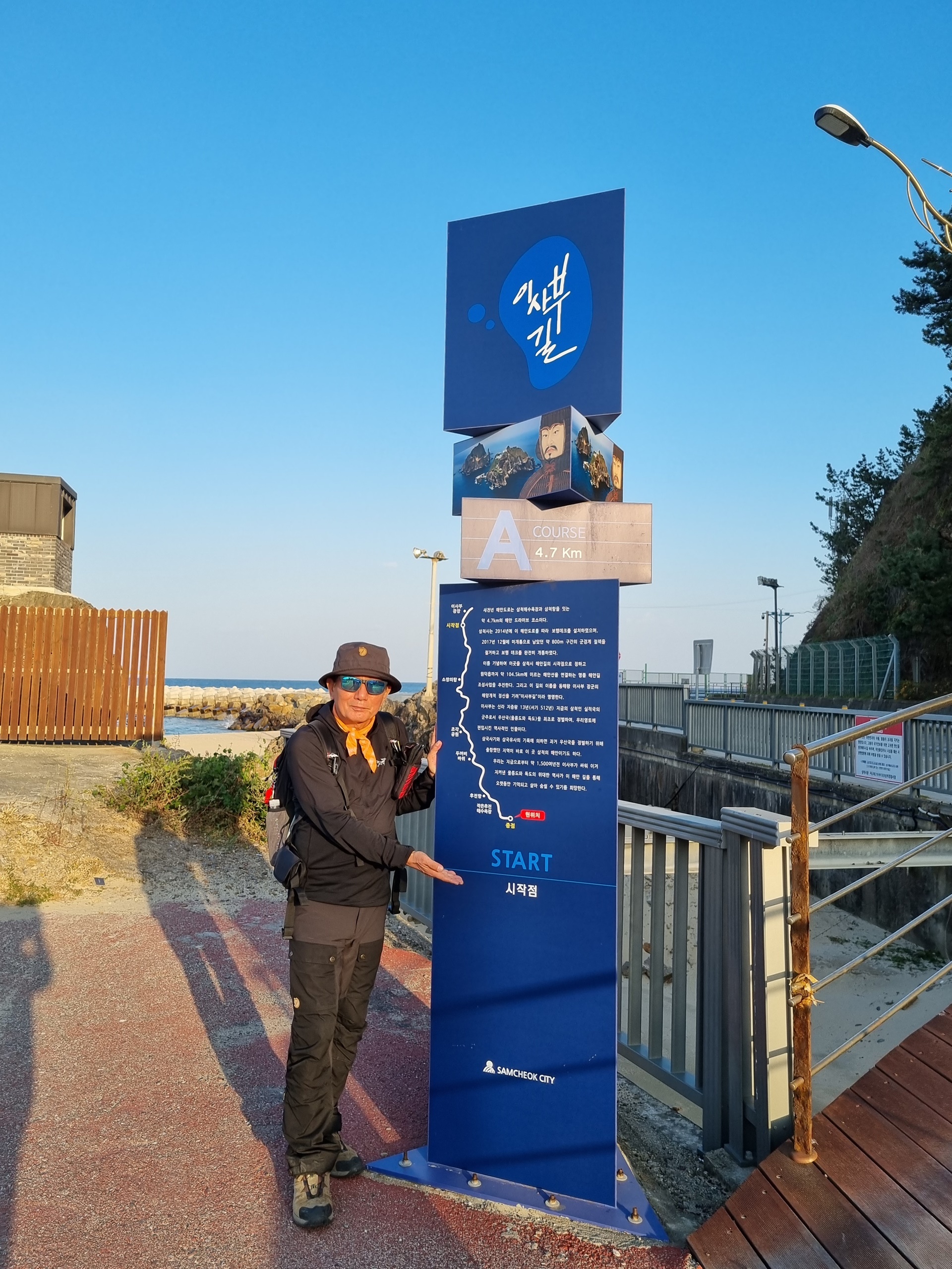 * 초곡용굴촛대바위 안내판 앞 강원 네이처로드 인증
