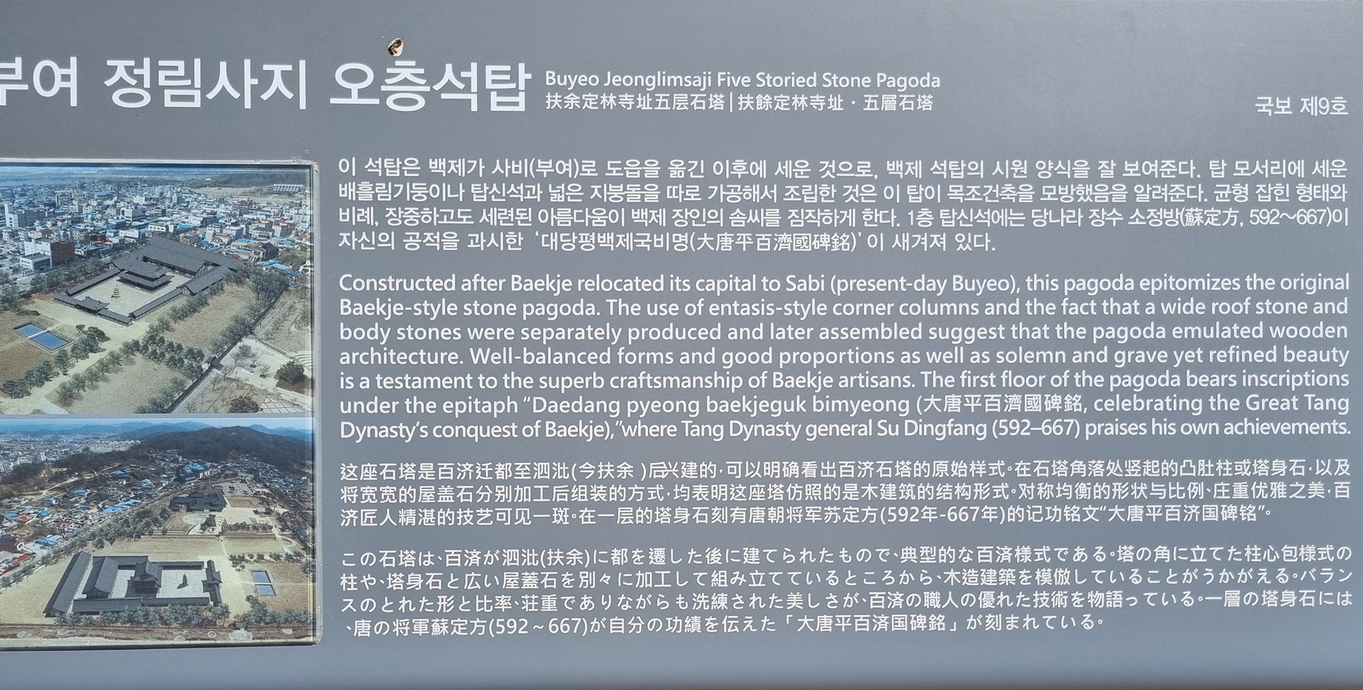 ์ฌ์ ์ 301ํธ. ๋ฐฑ์ ์ฑ์์ด 538๋ ๋ด, ์ง๊ธ์ ๋ถ์ฌ์ธ ์ฌ๋น์ฑ์ผ๋ก ๋์์ ์ฎ๊ธฐ๋ฉด์ ๋์ฑ ์์ ์ค์ ๋·์·๋จ·๋ถ ๋ฑ 5๋ถ๋ก ๊ตฌํํ๊ณ ๊ทธ ์์ ์๊ถ๊ณผ ๊ด์ฒญ, ์ฌ์ฐฐ ๋ฑ์ ๊ฑด๋ฆฝํ ๋ ๋์ฑ์ผ๋ก ์์์ธ์ธ ์ฌ๋น๋์ฑ์ ์ค์ฌ์ง์ ์ ๋ฆผ์ฌ๊ฐ ์ธ์์ก๋ค. ์ ๋ฆผ์ฌ์ ์๊ถ์ ๊ด๊ณ๋ ์ค๊ตญ์ ๋ถ์(ๅ้ญ) ๋์์ฑ(ๆด้ฝๅ) ๋ด์ ํฉ๊ถ๊ณผ ์๋ ์ฌ(ๆฐธๅฏงๅฏบ)์ ๊ด๊ณ์ ํก์ฌํ์ฌ ์ฌ๋น๋์ฑ์ ๊ธฐ๋ณธ๊ตฌ์กฐ๊ฐ ๋ถ์์ ์ํฅ์ ๋ฐ์์์ ์์ฌํ๋ค. ์ ๋ฆผ์ฌ์ง ์ค์ธต์ํ 1์ธต ํ์ ํ๋ฉด์ ๋น๋๋ผ๊ฐ ๋ฐฑ์ ๋ฅผ ๋ฉธ๋ง์ํจ ์ ์น๊ธฐ๋ ๋น์ ์ธ ๋ด์ฉ์ด ์๊ฒจ์ ธ ์์ด, ์ ๋ฆผ์ฌ๋ ๋ฐฑ์ ์์ค ๋๋ ๊ตญ๊ฐ์ ์์ง์ ์กด์ฌ์๋ ๊ฒ์ผ๋ก ํ๋จ๋๋ค. ๋ถ์ฌ ์ ๋ฆผ์ฌ์ง ์ค์ธต์ํ(๊ตญ๋ณด ์ 9ํธ)์ ๋ฐฑ์ ์ธ์ ๊ฐ์ฑ์ด ๊ณ ์ค๋ํ ๋ด๊ฒจ์ง ์ํ์ด์ง๋ง, ์ด์ธต ํ๋ถ์ ์๋ ์์ ๋ฐฉ(่ๅฎๆน)์ ํ์ ๊ธฐ๊ณต๋ฌธ(ๅนณๆฟ็ดๅๆ), ์ฆ ์์ ๋ฐฉ์ด ๋ฐฑ์ ๋ฅผ ๋ฉธํ ๊ธฐ๋ ์ผ๋ก ์๊ธด ๊ธ๋ก ์ธํด ์ค๋ ๊ธฐ๊ฐ ๋์ ‘ํ์ ํ(ๅนณๆฟๅก)’์ผ๋ก ๋ถ๋ ธ๋ค. ๊ทธ๋ฌ๋ 1942๋ ์ผ๋ณธ์ธ ํ์ง์ฌ์ ๊ฐ์ฆ์ค(่คๆพคไธๅคซ)๊ฐ ์ ํฐ ๋ฐ๊ตด์กฐ์ฌ ์ค์ ๋ฐ๊ตดํ ๊ธฐ์์กฐ๊ฐ์ ‘ํํํ๋ ๋ฌด์ง์ ๋ฆผ์ฌ๋์ฅ๋น์ด(ๅคชๅนณๅ ซๅนดๆ๏ฅฑๅฎๆๅฏบๅคง่็ถ่)’๋ ๋ช ๋ฌธ์ด ์ ํ ์์ด, ํํ 8๋ ์ธ ๊ณ ๋ ค ํ์ข 19๋ ์ ์ ๋ฆผ์ฌ๋ก ๋ถ๋ฆฌ์ ์์ ์๊ฒ ๋์๋ค. ์ดํ ‘์ ๋ฆผ์ฌ์ง’์ ‘์ ๋ฆผ์ฌ์ง ์ค์ธต์ํ’์ผ๋ก ๋ถ๋ฆฌ๊ฒ ๋์๋ค.