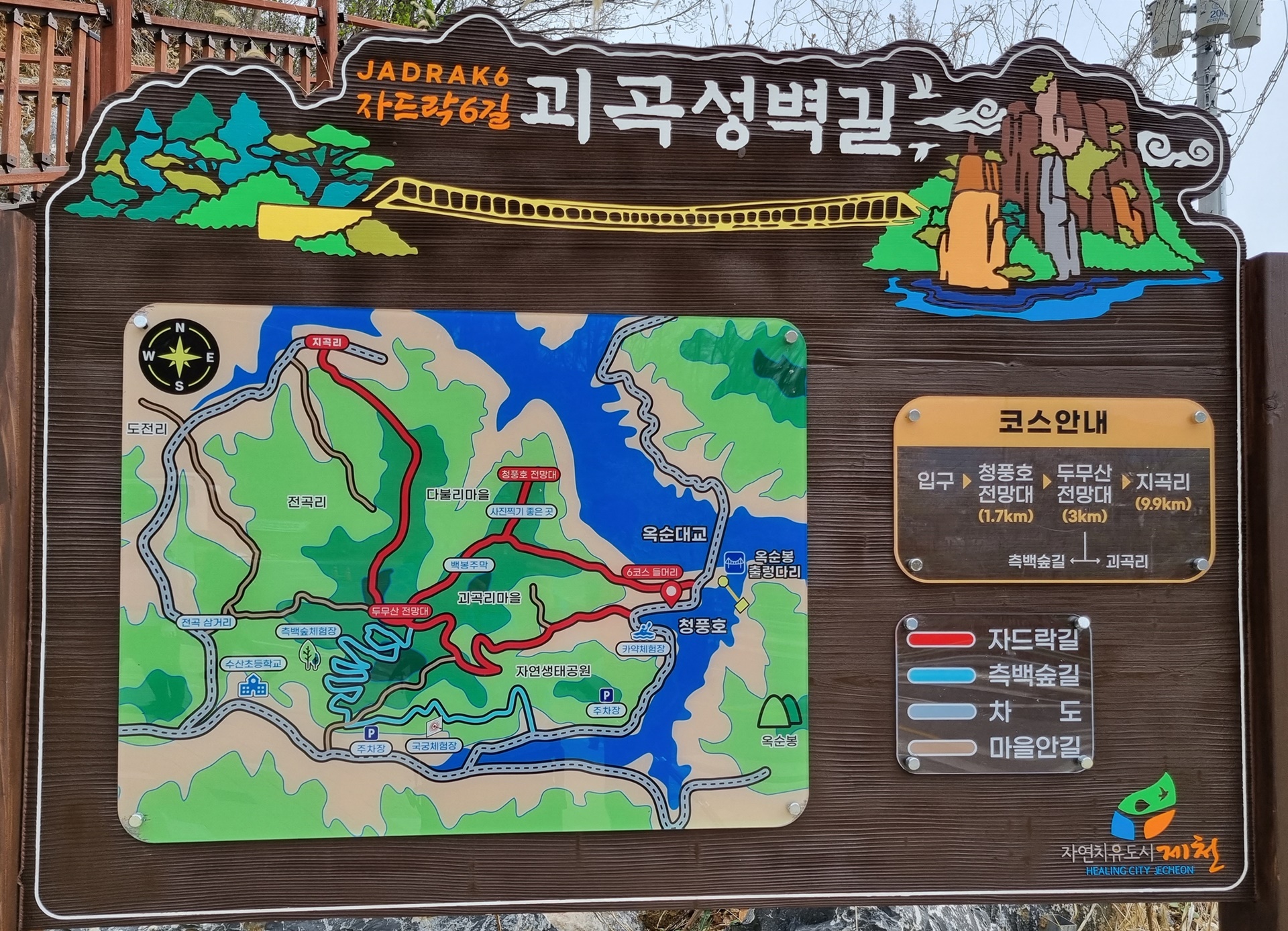 ์ฒญํํธ ์๋๋ฝ๊ธธ์ ๋ชจ๋ 7์ฝ์ค๊ฐ ๊ฐ๋ฐ๋์๋ค. ๊ทธ์ค ์ฅ์๋๊ต ์ ์ฅ์๋ด์ผํฐ์์ ์์ํด ๊ดด๊ณก๋ฆฌ์ ๋ค๋ถ๋ฆฌ๋ฅผ ์ง๋ ์ง๊ณก๋ฆฌ ๊ณ ์๊ณจ์ ์ด๋ฅด๋ 9.9km์ '๊ดด๊ณก์ฑ๋ฒฝ๊ธธ'์ด ๋ฉ์ง ์กฐ๋ง๊ณผ ๋ค์ํ ์๋ฌผ๊ตฐ์ด ์กฐํ๋ฅผ ์ด๋ฃจ๋ ์ต์์ ์ฝ์ค๋ค.