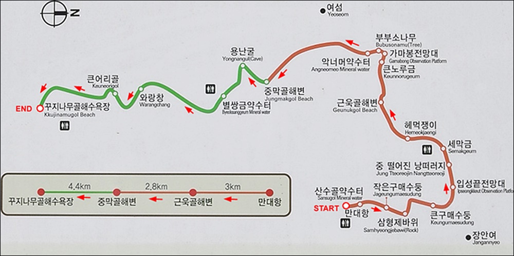 โ๋น๋ด์ ๋ง๋-์นผ๋ฐ์-๊ฐ๋ง๋ด์ ๋ง๋-์ฌ์ฌ-์ค๋ง๊ณจ-์ฉ๋๊ตด-์์์ด๋ฆฌ๊ณจ-ํฐ์ด๋ฆฌ๊ณจ-๊พธ์ง๋๋ฌด๊ณจํด์์์ฅ (์ฝ9.7Km/4.5H)