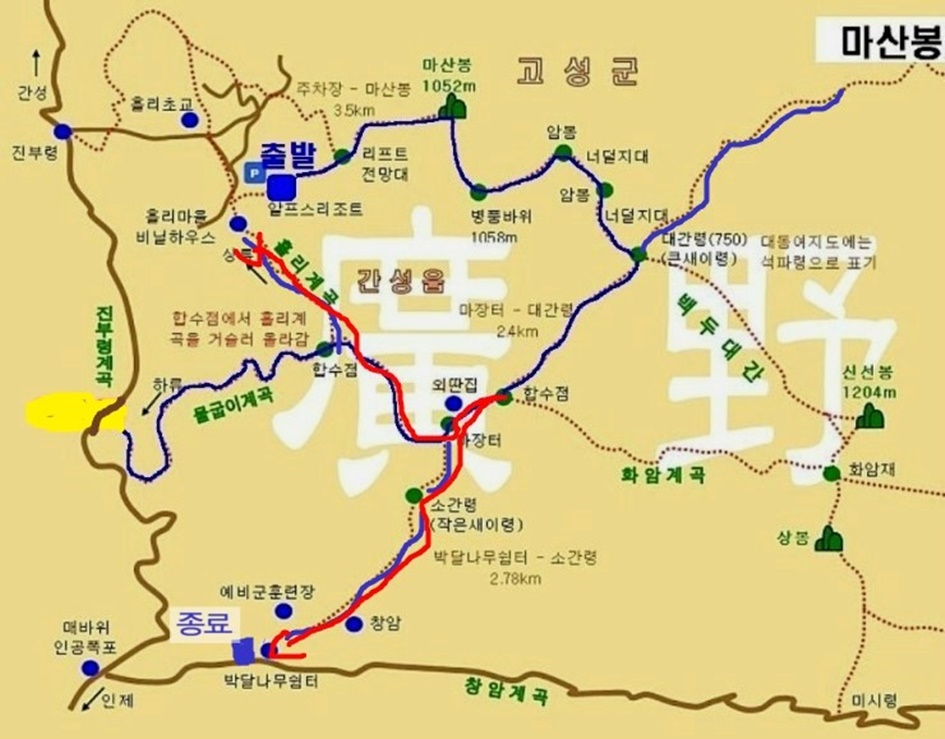 โ ํ๋ฆฌ๋ณด๊ฑด์ง์-ํ๋ฆฌ๊ณ๊ณก-๋ฌผ๊ตฝ์ด๊ณ๊ณกํฉ์์ -๋ง์ฅํฐ์๋-์๊ฐ๋ น-๋ฐ๋ฌ๋๋ฌด์ผํฐ (์ฝ7Km / 5์๊ฐ)