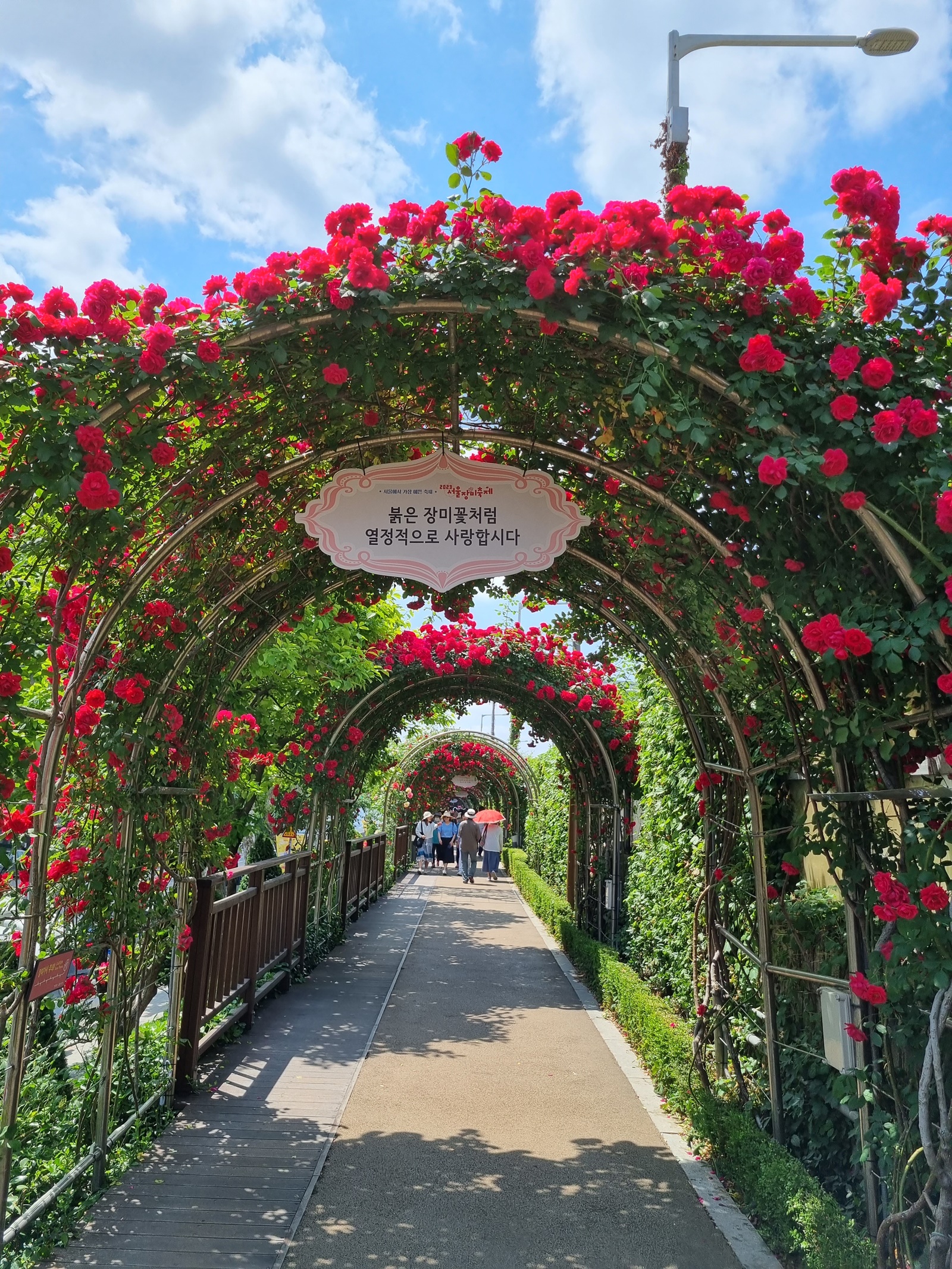 ์ค๋์ฅ๋ฏธ๊ณต์์ ๋์ฌ์ ๊ฐ๋ก์ง๋ฅด๋ ์์ํ ํ์ฒ๊ณผ ํํ์์์ ์ฅ๋ฏธ๋ฅผ ๋ง๋๋ณผ ์ ์๋
