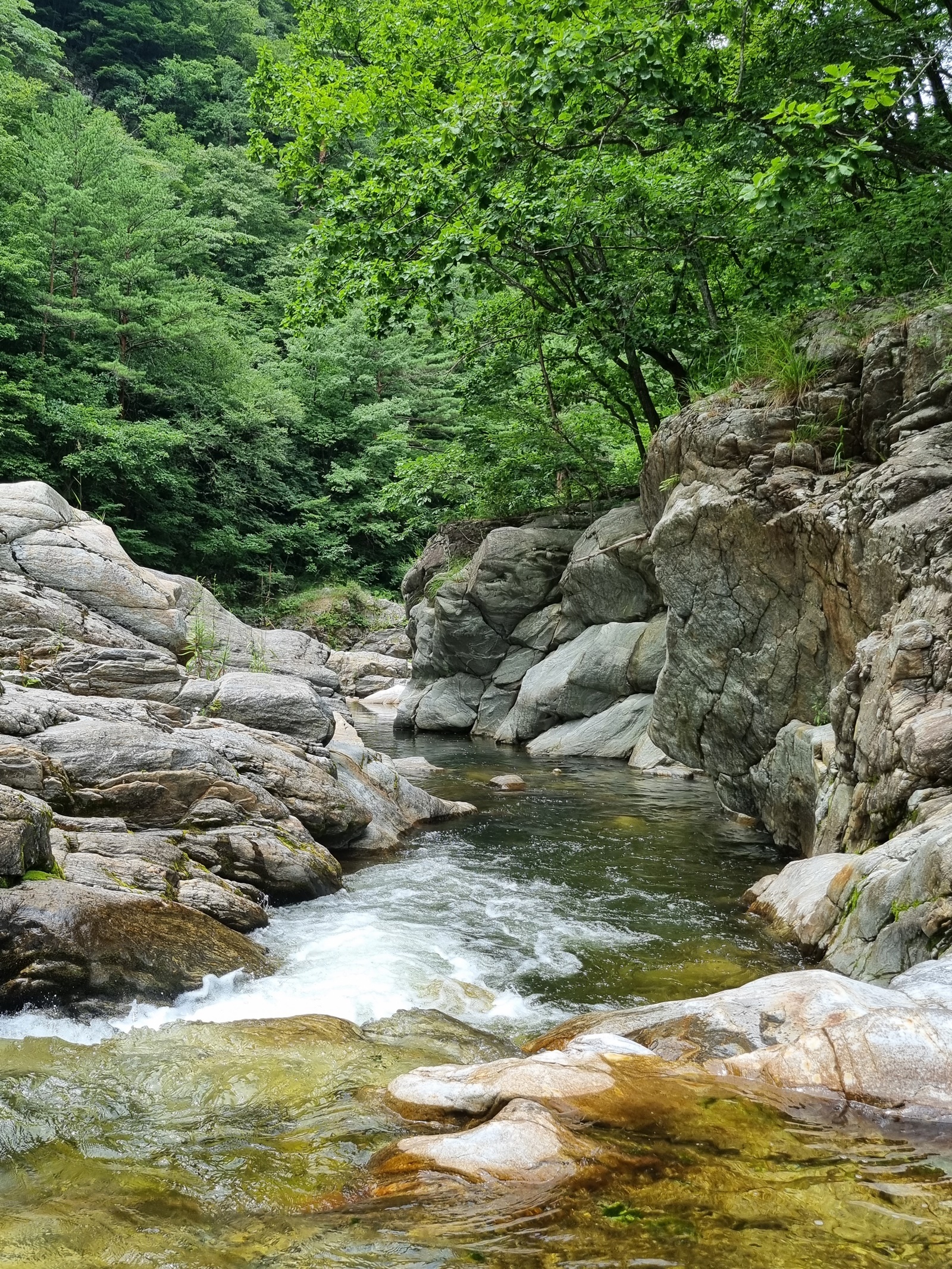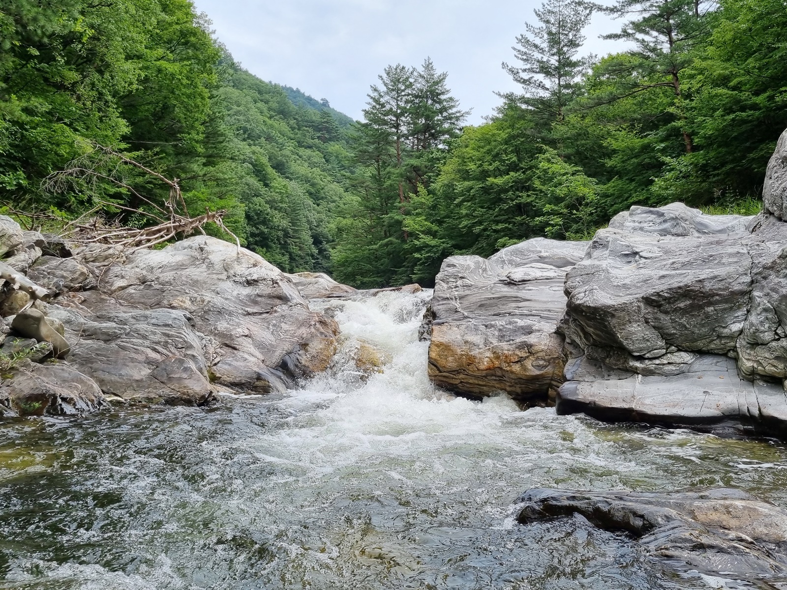 ์ค๋์ฐ ์๋ฝ์ ์๋ณต์ฐ(1359m)์์ ๋ฐ์ํ ๋ฌผ๋ค์ด ์ด์ชฝ์ผ๋ก ๋ชจ์ฌ๋ค์ด ๋ฒ์์น ๊ณ๊ณก์ ๊ฑฐ์ณ ๋จ๋์ฒ์ผ๋ก ํ๋ฌ๊ฐ๋ค. ๋ง์ ์ ๊ณ๊ณก์ ํญํฌ ์๋ ๋ง์ ์ด๋ฆ์ด ์ ๋ํ ๊ฐ๋ง์ฅ(้) ๋ชจ์์ ์ํน ํฌ ์ฐ๋ชป(ๆทต)์ธ ‘๊ฐ๋ง์’๊ฐ ์๋ค. ๊ฐ๋ง์๋ก ๊ฐ๋ ๋ฐ๋์ชฝ ๊ณจ์ง๊ธฐ์ ๋ถ์ฐ์ฝ์ํฐ๋ ์๋ค.