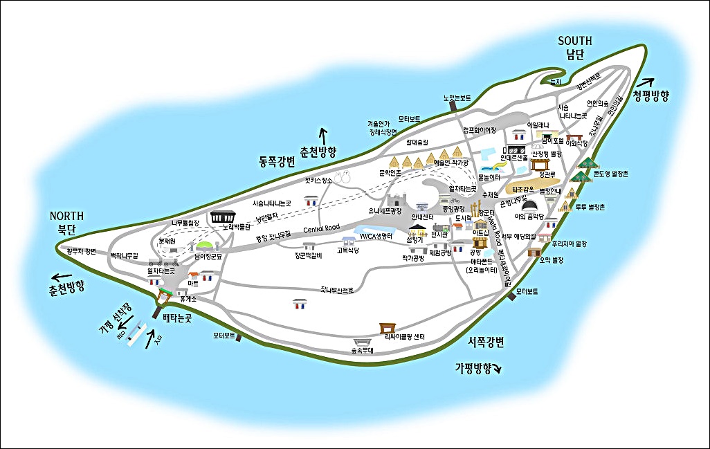 ๊ฒฝ๊ธฐ๋ ๊ฐํ๊ตฐ์์ ๋จ์ชฝ์ผ๋ก ์ฝ 3.8km ์ง์ ์ ์์ผ๋ฉฐ, ํ์ ๊ตฌ์ญ์ ์ถ์ฒ์์ ์ํ๋ ๊ฐํ๊ตฐ ๋ฌ์ ๋ฆฌ์ ์ ํ๋ฏ๋ก ๋๋ถ๋ถ์ ๊ด๊ด๊ฐ๋ค์ด ์ด๊ณณ์ ๊ฑฐ์ณ ๊ฐ๋ค. ์กฐ์ ์ธ์กฐ ๋ ์ด๋ฆ๋ ๋ฌด๊ด์ธ ๋จ์ด์ฅ๊ตฐ์ ๋ฌ๊ฐ ์๋ค๊ณ ํ์ฌ ๋จ์ด์ฌ์ด๋ผ ํ๋ค. ์ด๋ฉด์ ์ ์ฝ 0.453ใข์ด๋ฉฐ, ๋๋ ๋ ์ฝ 4km์ด๋ค.