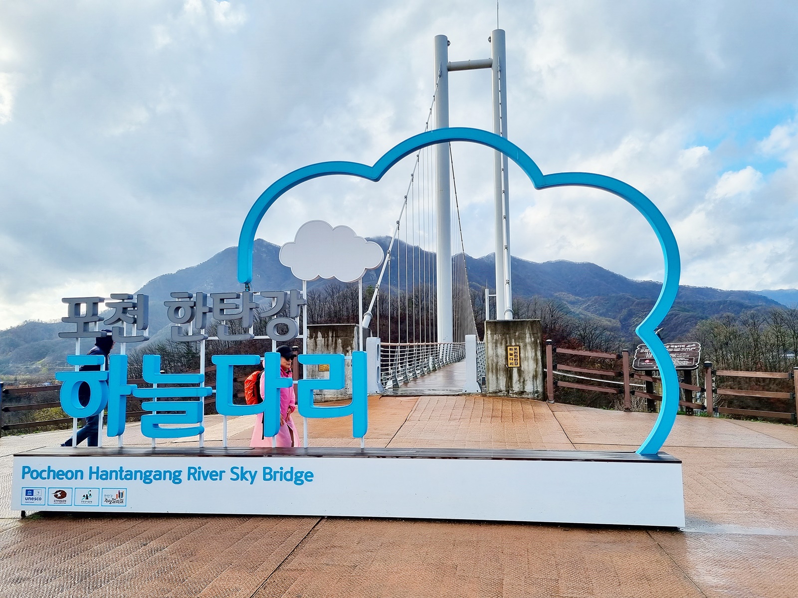 ํฌ์ฒ ํํ๊ฐ์ ํ๊ณก์ ์ค์น๋ ํ๋ค๋ค๋ฆฌํฌ์ฒ์ ์๋ถ๋ฉด ๋ํ์ฐ๋ฆฌ๋ฅผ ํ๋ฅด๋ ํํ๊ฐ์ ํ๊ณก ์ง์50m์ ์ค์น๋ ํ๋ค๋ค๋ฆฌ๋ก 2019๋ 12์์ ์ค๊ณต๋์๋ค. ๋ค๋ฆฌ์ ๊ธธ์ด๋ 200m์ด๋ฉฐ ํญ์ 2m์ด๋ค. ํํ๊ฐ์ ์ ์๋ 4๊ธฐ ํ์ฐํ๋๊ณผ ์นจ์์์ฉ์ผ๋ก ํ์ฑ๋ ์ฃผ์์ ๋ฆฌ์ ํ๊ณก์ ๋น๊ฒฝ์ ํ๋ฐฉํ ์ ์๋๋ฐ ์ด๊ณณ์ ์๋ณต 6km์ ์ฐ์ฑ ์ฝ์ค๊ฐ ์์๋๋ ๊ณณ์ด๋ค. ํฌ์ฒ ํํ๊ฐ ํ๋๋ค๋ฆฌ์ ๋ฐ๋ฅ์๋ ๊ฐํ์ ๋ฆฌ ๋ฐ๋ฅ๋ฉด์ ์ค์นํ์ฌ ์ผ๋ช ์ค์นด์ด์ํฌ๋ผ๊ณ ๋ถ๋ฅด๋ฉฐ ๊ณ๊ณก์ ์๋๋ฅผ ๋ด๋ ค๋ค๋ณด๋ฉฐ ๊ฑธ์ ์ ์๋๋ก ํ์๋ค.