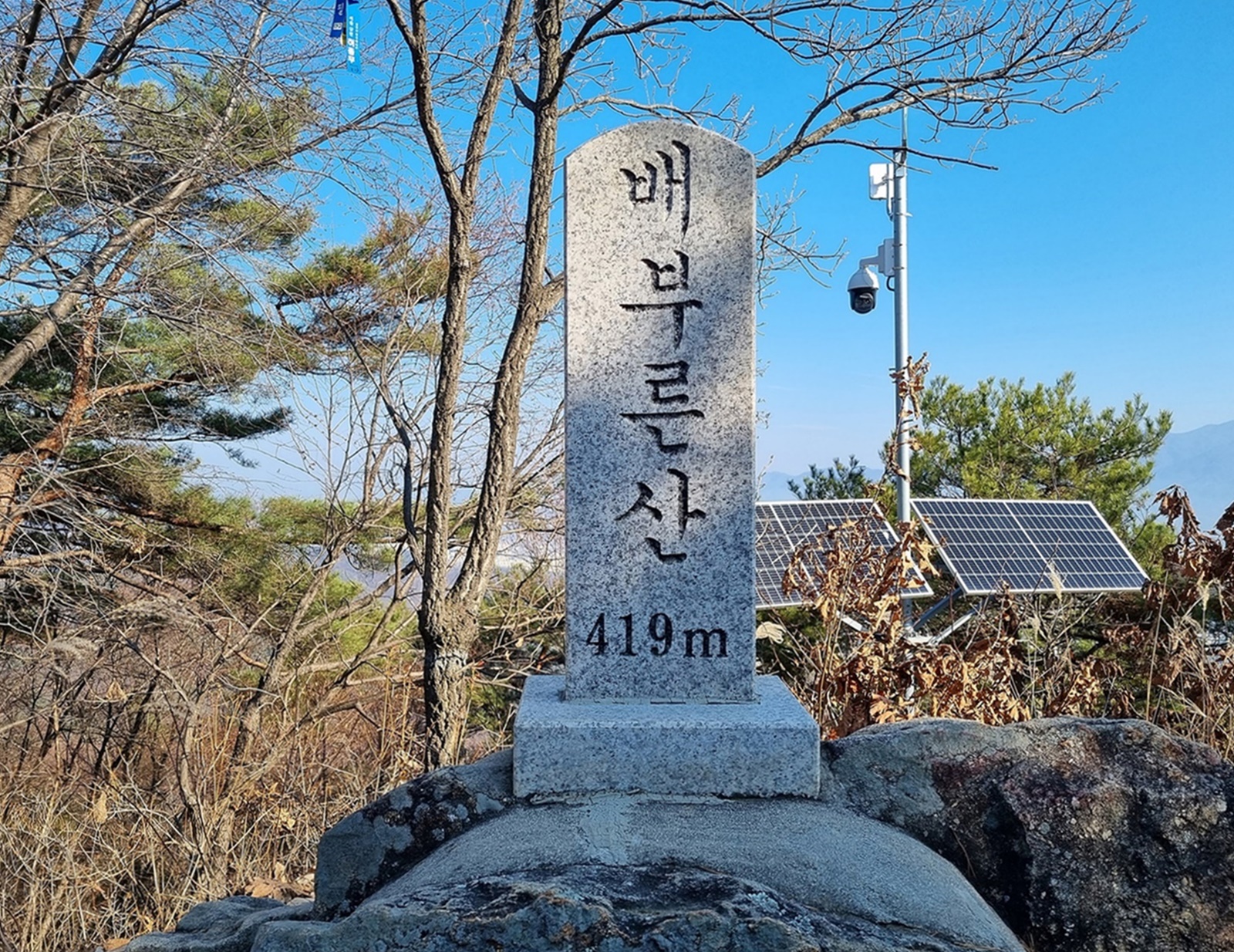 ์์ฃผ์ ๋ฌด์ค๋๊ณผ ํฅ์ ๋ฉด ๊ฒฝ๊ณ์ ์์นํ ์ฐ์ด๋ค(๊ณ ๋ 437m) ํฌ๋ณต์ฐ.๋ฐฐ๋ถ๋ฆ์ฐ ์ด๋ผ๊ณ ๋ถ๋ฅธ๋ค