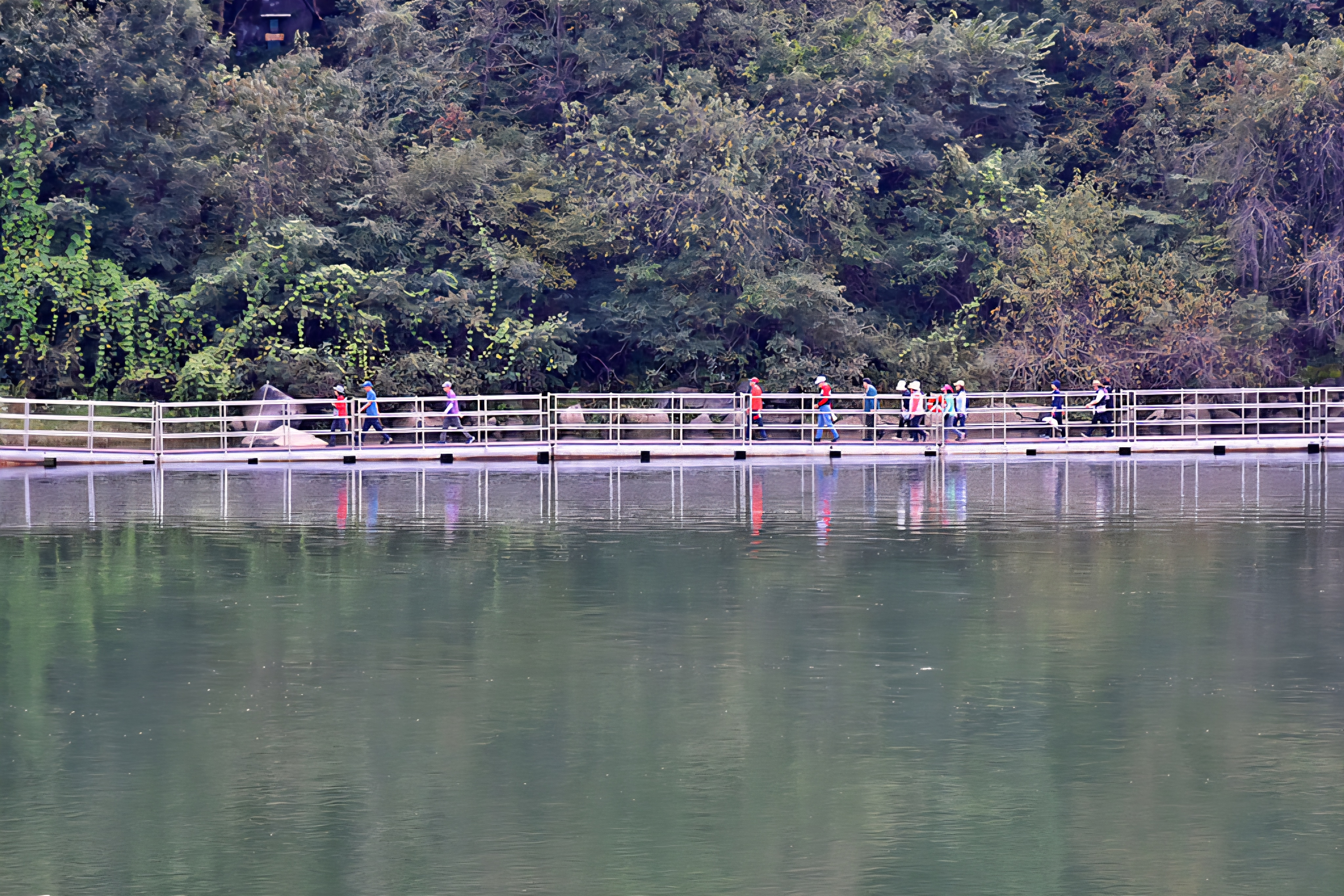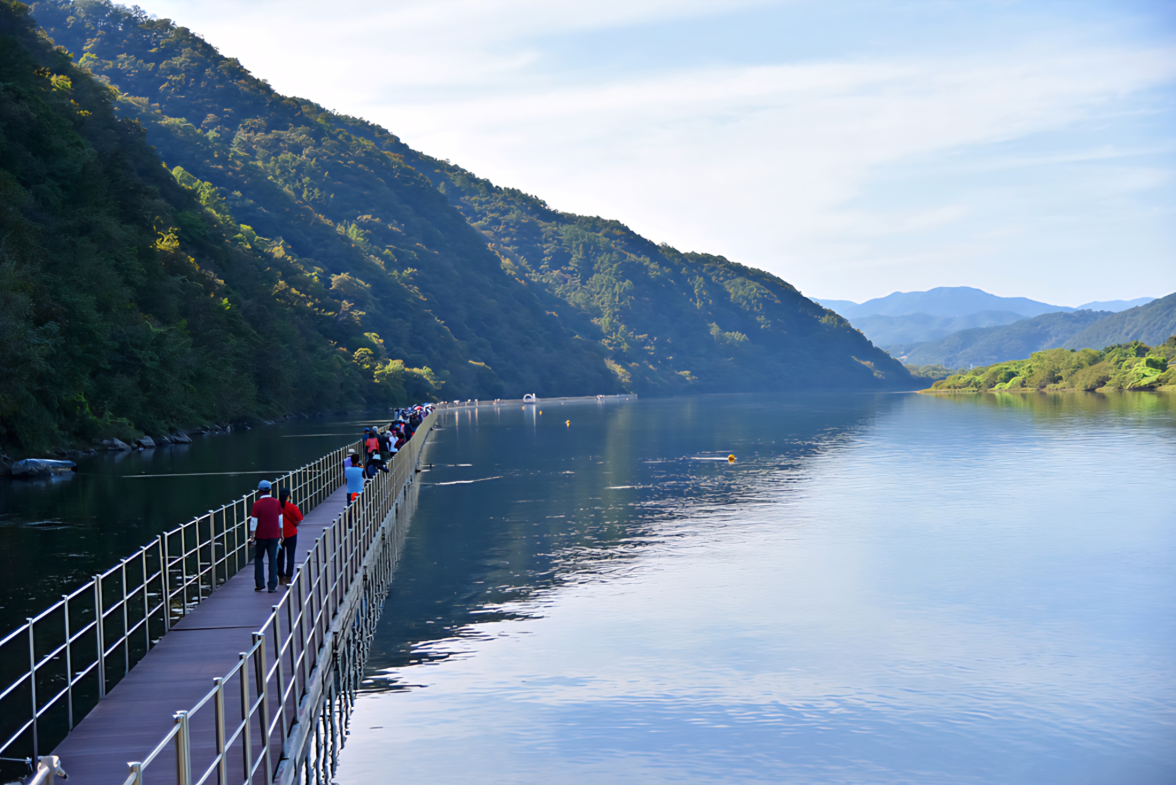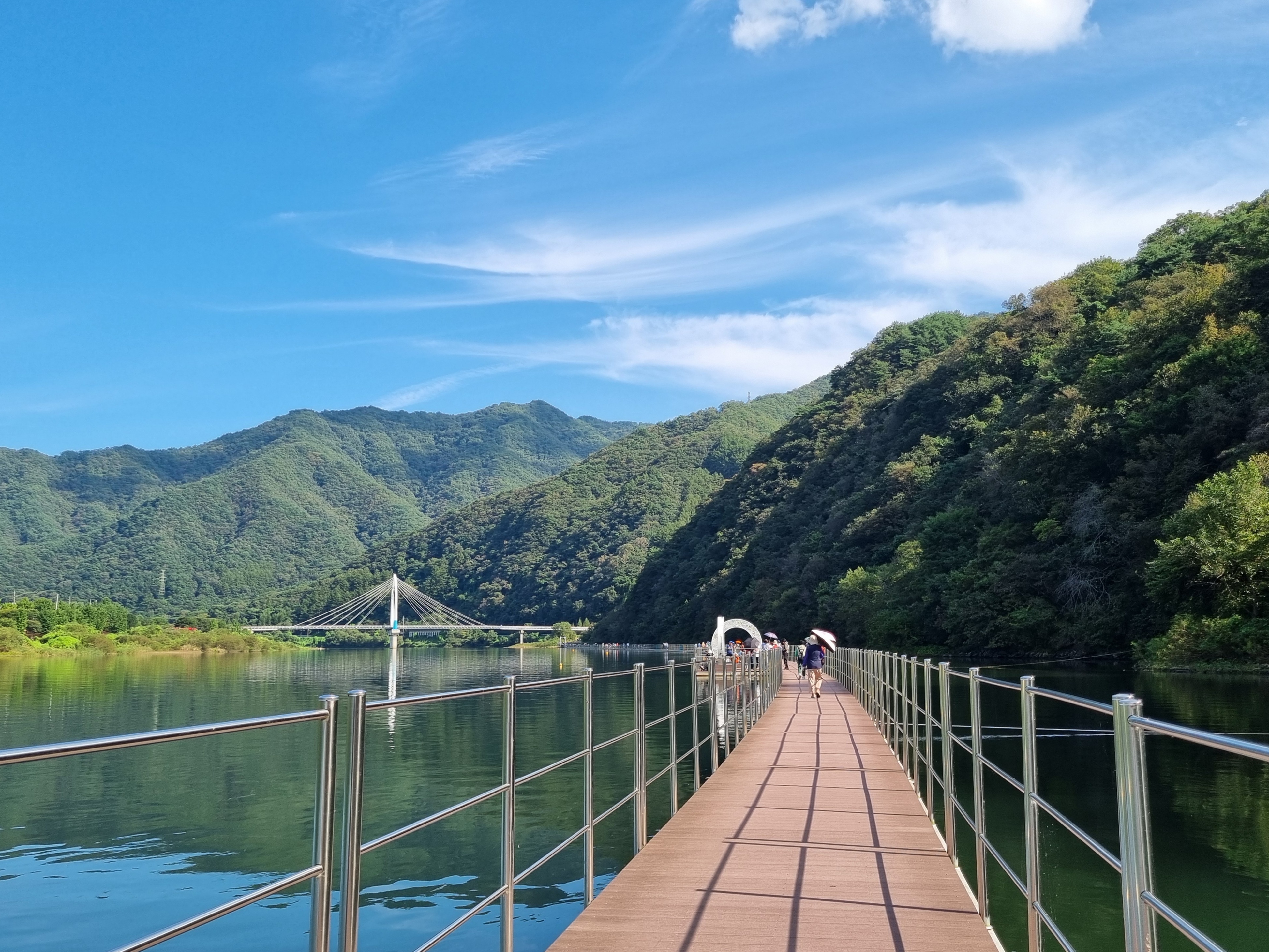 ์ด๊ธธ์ด 290m, ํญ 3m ๊ท๋ชจ๋ก ์ฌ๋๊ณผ ์์ ๊ฑฐ๋ง ํตํํ ์ ์๋ ๋ค๋ฆฌ๋ก ๊ต๊ฐ ์ํ ์ค 120m ๊ตฌ๊ฐ์ ํฌ๋ช