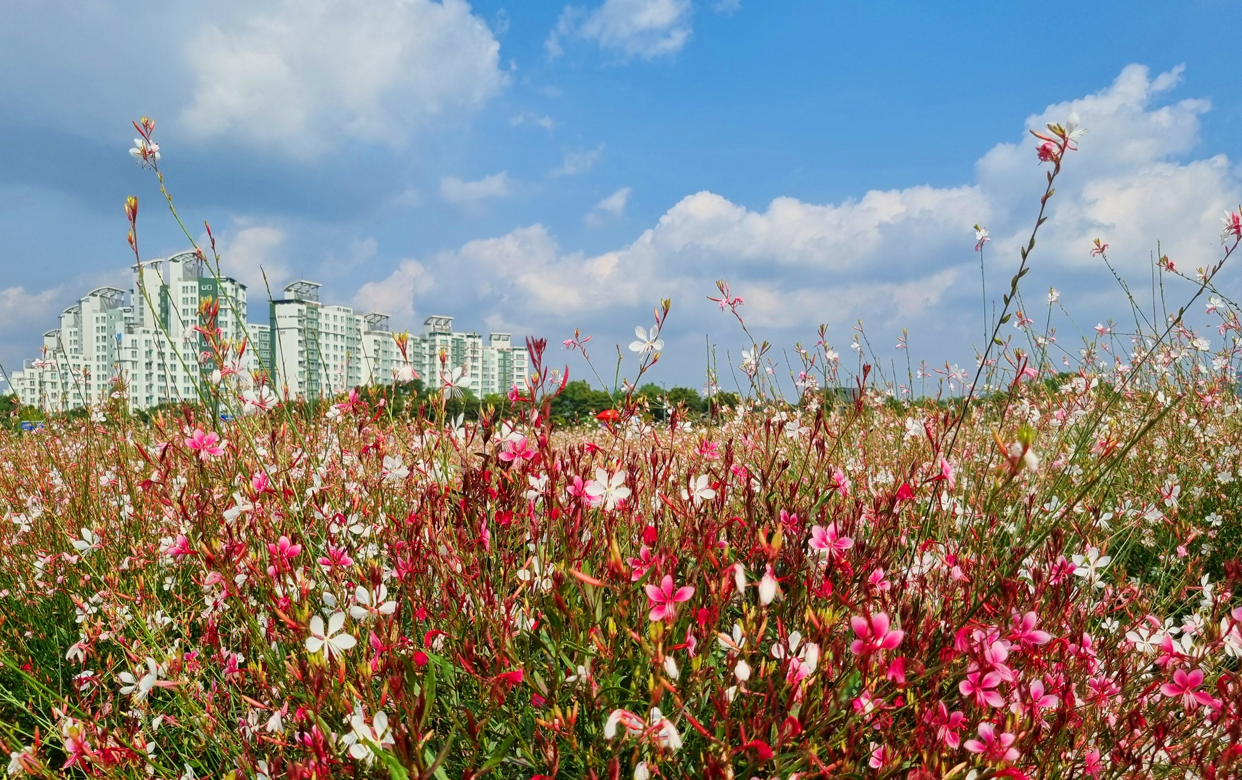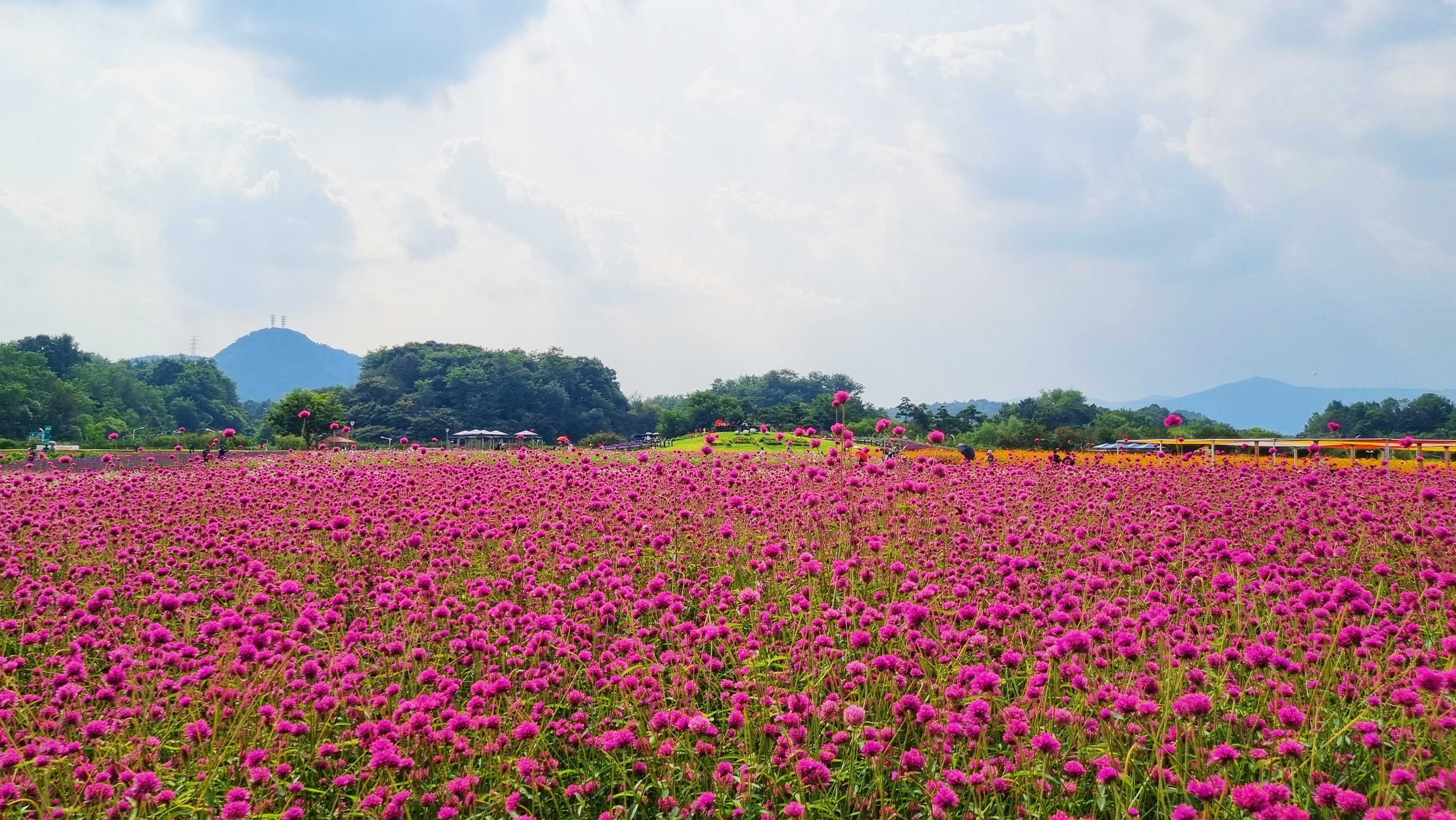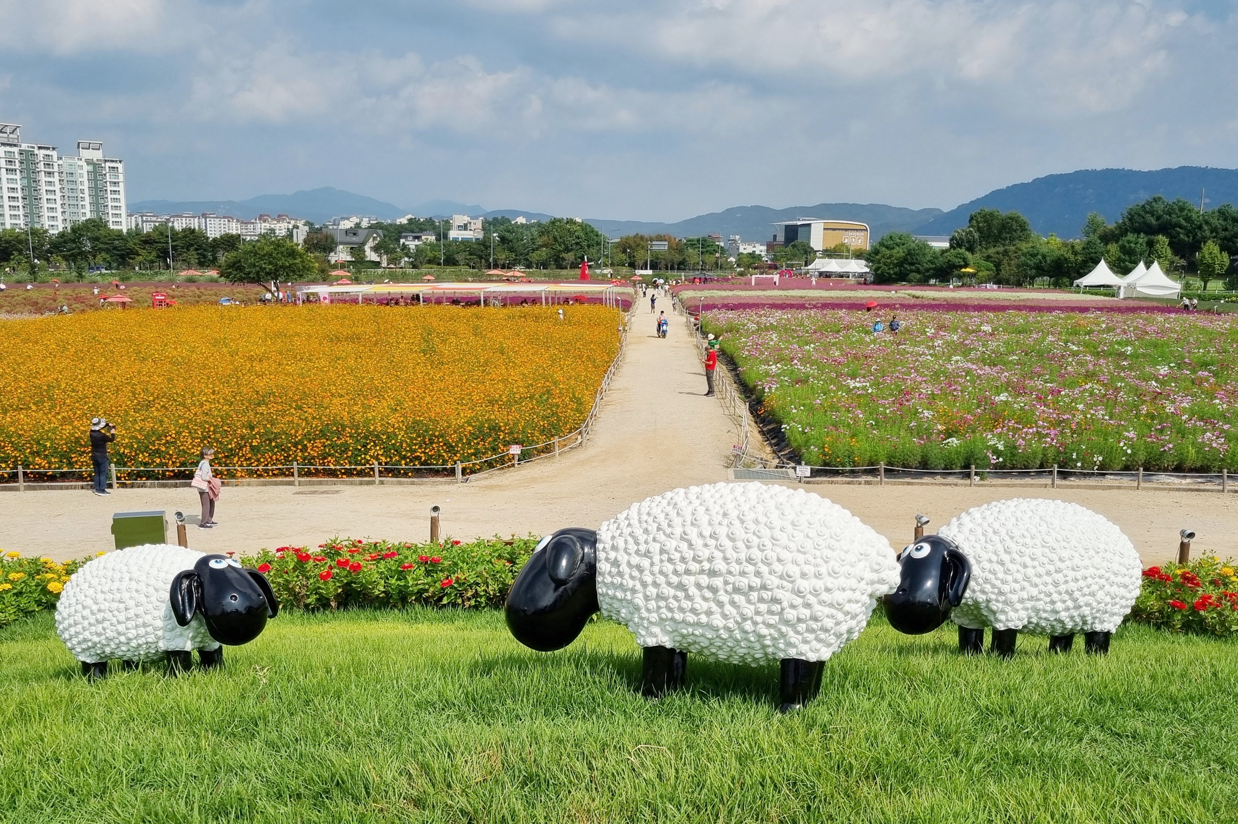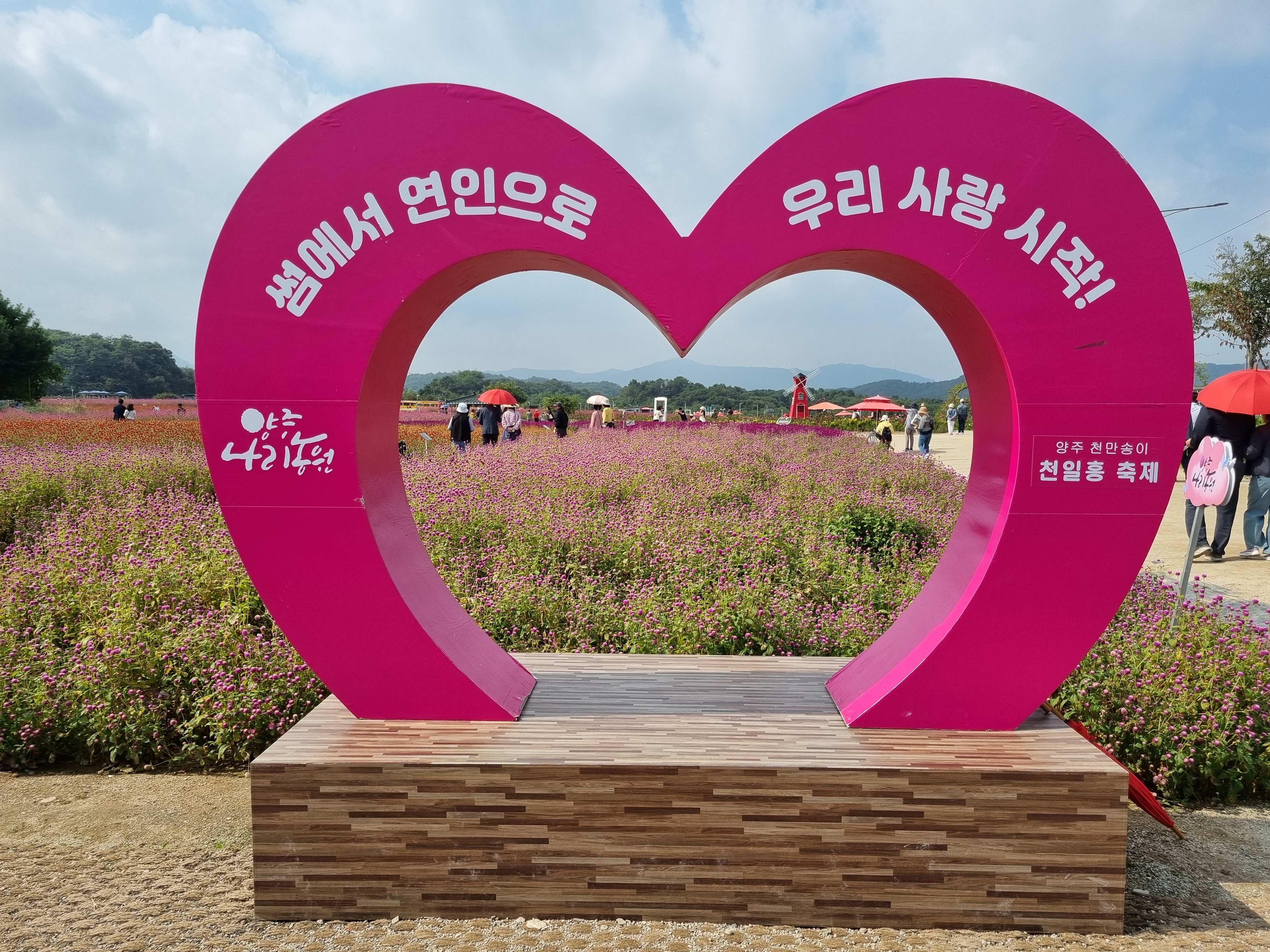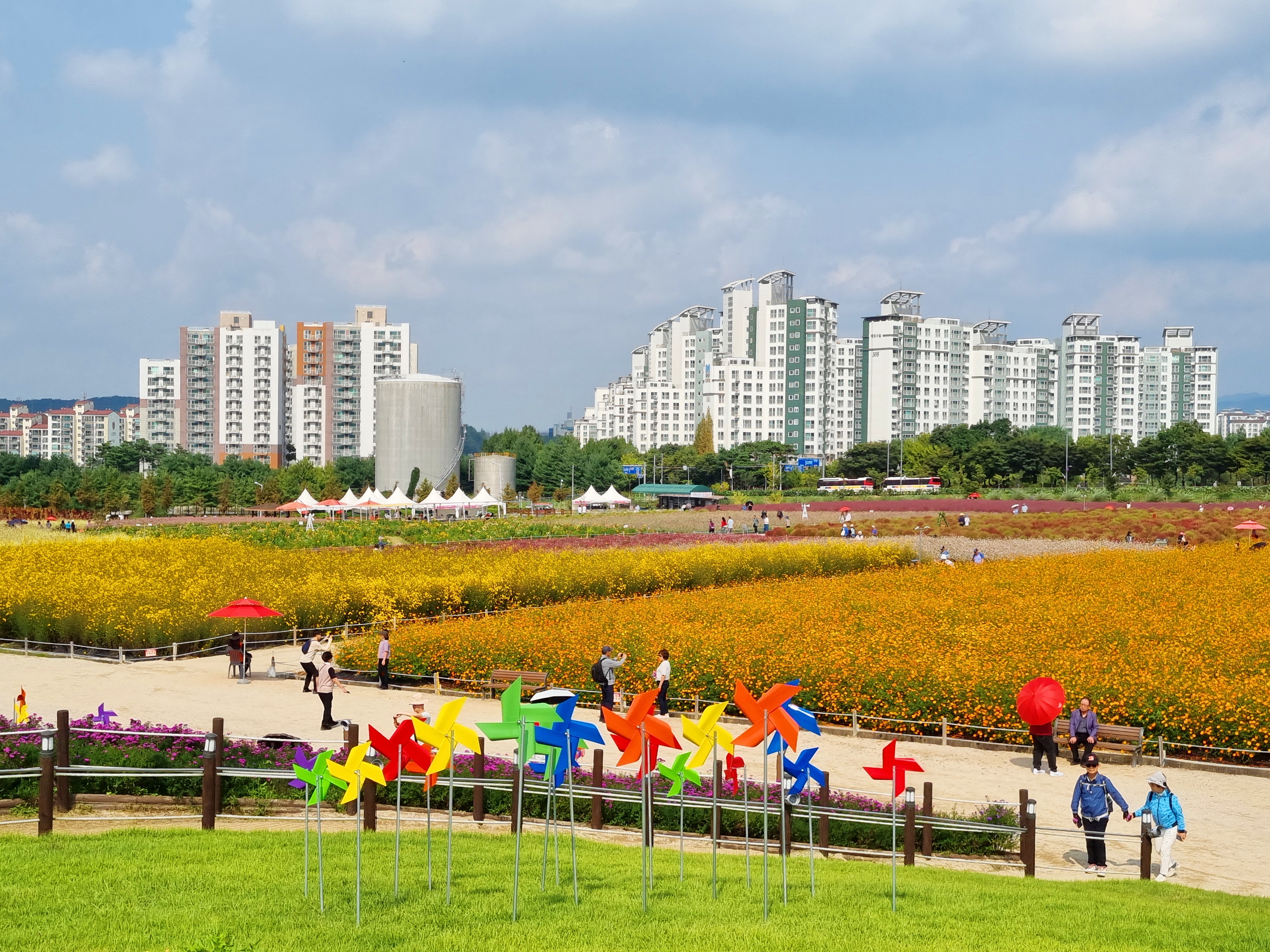 ์์ฃผ๊ตญ๋ฏผ์ฒด์ก์ผํฐ ๋ถ๊ทผ์ ์์นํ ๋๋ฆฌ๋์์ ๋งค๋ ๊ฐ์์ ๊ฐ์ต๋๋ ์ฒ์ผํ ์ถ์ ์ ํํฌ๋ฎฌ๋ฆฌ๊ฐ ์์ด SNS ์ฌ์ง ๋ช ์๋ก ์ธ๊ธฐ๋ฅผ ์ป๊ณ ์๋ ์ฒดํ ๋์์ด๋ค. 115,724.8ใก ๋ฉด์ ์ ์๋ฏผ ํ๋ง ๊ณต๊ฐ๊ณผ ์ฒดํ ๊ณต๊ฐ ์ ๊ณต์ ์ํด ๋ด์๋ ์ฒญ๋ณด๋ฆฌ, ๊ฝ์๊ท๋น, ์๋ ๊ตญํ ๋ฑ์, ๊ฐ์์๋ ์ฒ์ผํ, ํํฌ๋ฎฌ๋ฆฌ, ๋์ฌ๋ฆฌ ๋ฑ 22์ข ์ ์๋ฌผ์ ์ฌ๋ฐฐํ๊ณ ์๋ค. ํนํ ๊ฐ์์๋ 6๋ง 6155ใก ๊ท๋ชจ์ ์ ๊ตญ ์ต๋ ๊ตฐ๋ฝ์ง์ธ ์ฒ์ผํ๊ณผ ์ ๊ตญ 4๋ ์ฑ์ง๋ก ๋ถ๋ฆฌ๋ ํํฌ๋ฎฌ๋ฆฌ๊ฐ ์ฅ๊ด์ ์ด๋ฃฌ๋ค. ๋๋ถ์ ๊ฐ์์ ์ด๋ฆฌ๋ [์์ฃผ ์ฒ๋ง์ก์ด ์ฒ์ผํ ์ถ์ ]๊ฐ ๊ฝ๋์ด ๋ช ์๋ก ์ ์๋ฌธ์ด ๋ ๊ฒฝ๊ธฐ ๋ถ๋ถ๋ฅผ ๋ํํ๋ ๊ฝ์ถ์ ๋ก ์๋ฆฌ๋งค๊นํ์์ผ๋ฉฐ, ๋งค๋ ๊ด๋๊ฐ์ด ์ฐพ๋ ๊ด๊ด๋ช ์๋ก ์ฑ์ฅํ์๋ค. [์์ฃผ ์ฒ๋ง์ก์ด ์ฒ์ผํ ์ถ์ ]๋ ๋งค๋ ๊ฐ์ 9~10์์ ๊ฐ์ต๋๋ฉฐ, ์ถ์ ๊ธฐ๊ฐ์๋ ํํ์์ ์๋ฆ๋ต๊ฒ ํ ๋ค๊ฝ ๊ด๋๊ณผ ๊ณต์ฐ, ์ด๋ฒคํธ, ์ฒดํ ๋ฑ ๊ฐ์ข ํ์ฌ๊ฐ ์ด๋ ค ์ฆ๊ฑฐ์์ ๋ํ๋ค. ํ์์์๋ ํตํ ๋ฐ ์ฐ์ฑ ์ด ์์ ๋ก์ฐ๋ ์ถ์ ๊ธฐ๊ฐ ์ค์๋ ์ ์ฅ๊ถ ๊ตฌ์ ํ ๊ด๋์ด ๊ฐ๋ฅํ๋ค. ๊ณ ์IC์์ ์ฐจ๋์ผ๋ก ์ฝ 4๋ถ, 1ํธ์ ์์ฃผ์ญ์์ ์ฝ 15๋ถ ์์๋๋ฉฐ ์งํ์ฒ ์ญ์์ ํ๋ฒ์ ์ค๋ ๋ฒ์ค๊ฐ ์๋ค. ์ธ๊ทผ์ ์ฅํฅ์ ์์ง, ๊ฐ๋์ํธํํฌ, ํ๋ฃฉ์ค์กฐ๋ช ๋ฐ๋ฌผ๊ด, ํ์์ฌ์ง, ๋ถํ์ฐ๊ตญ๋ฆฝ๊ณต์, ๊ตญ๋ฆฝ์์ธ์์์ฐํด์๋ฆผ ๋ฑ์ด ์๋ค.
